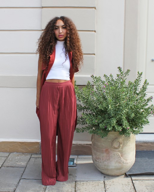 Larissa’s fearlessness is my favorite style quality. In addition to her creative combinations, she encompasses the vision to make any outfit great! Whether she’s rocking one of her many statement faux furs or an eye-catching pair of baby blue culottes, this style maven is an expert when it comes to making her looks pop. (And, I’m here for everything!)