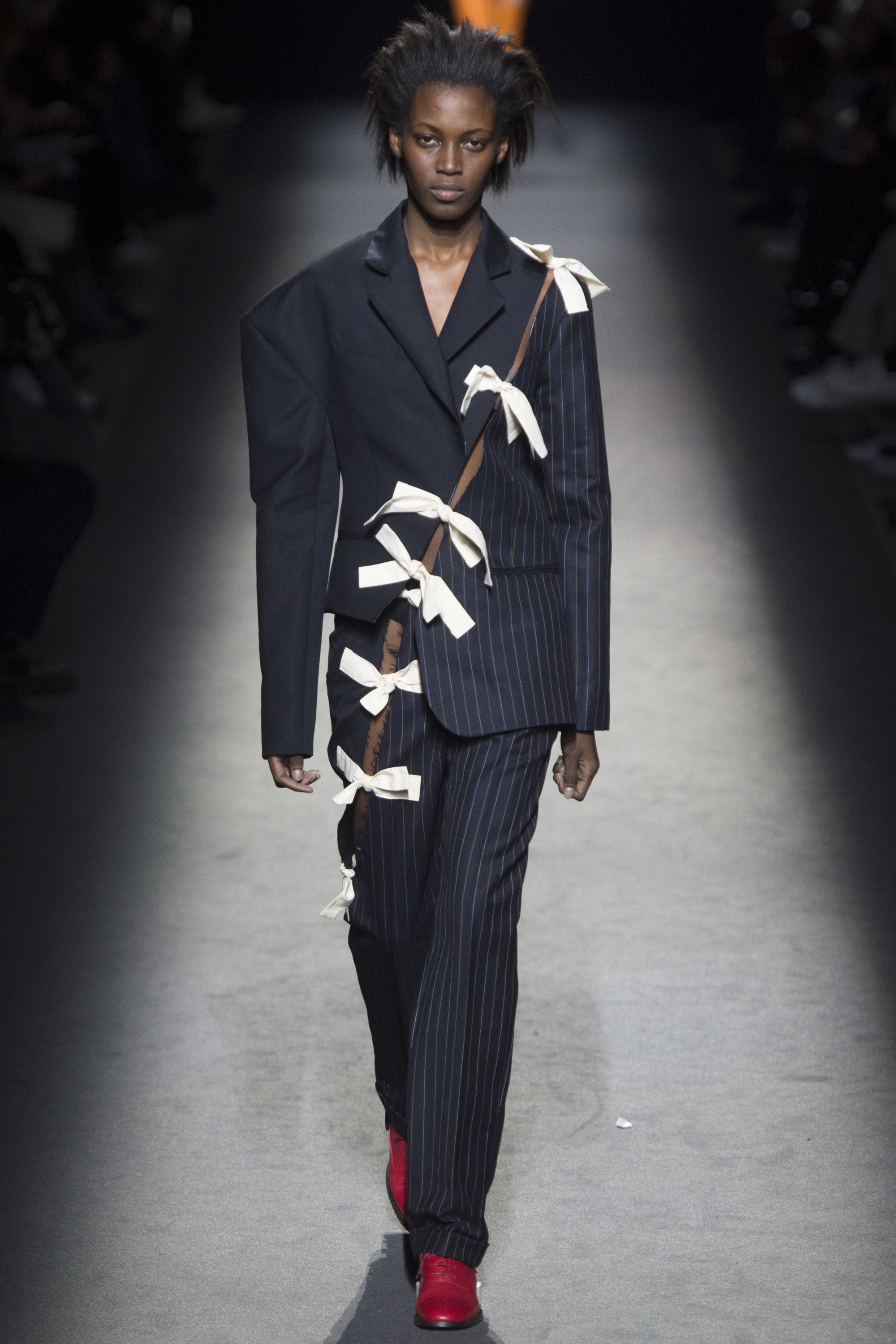 Y/Project stayed true to its unisex ethos and swung between historical references (see bishop sleeves) and inventive seductive dressing, such as exposed hips in leather bodysuits. Atlein, a brand founded by Antonin Tron, made its PFW debut (they don’t even have a website yet, check out their IG!) and impressed editors with his figure-flattering pieces that won’t break the budget. Anrealage took an abstract tact with boxy silhouettes, some even “coded” using a technique called visual cryptography, which made for a undeniably stunning presentation.