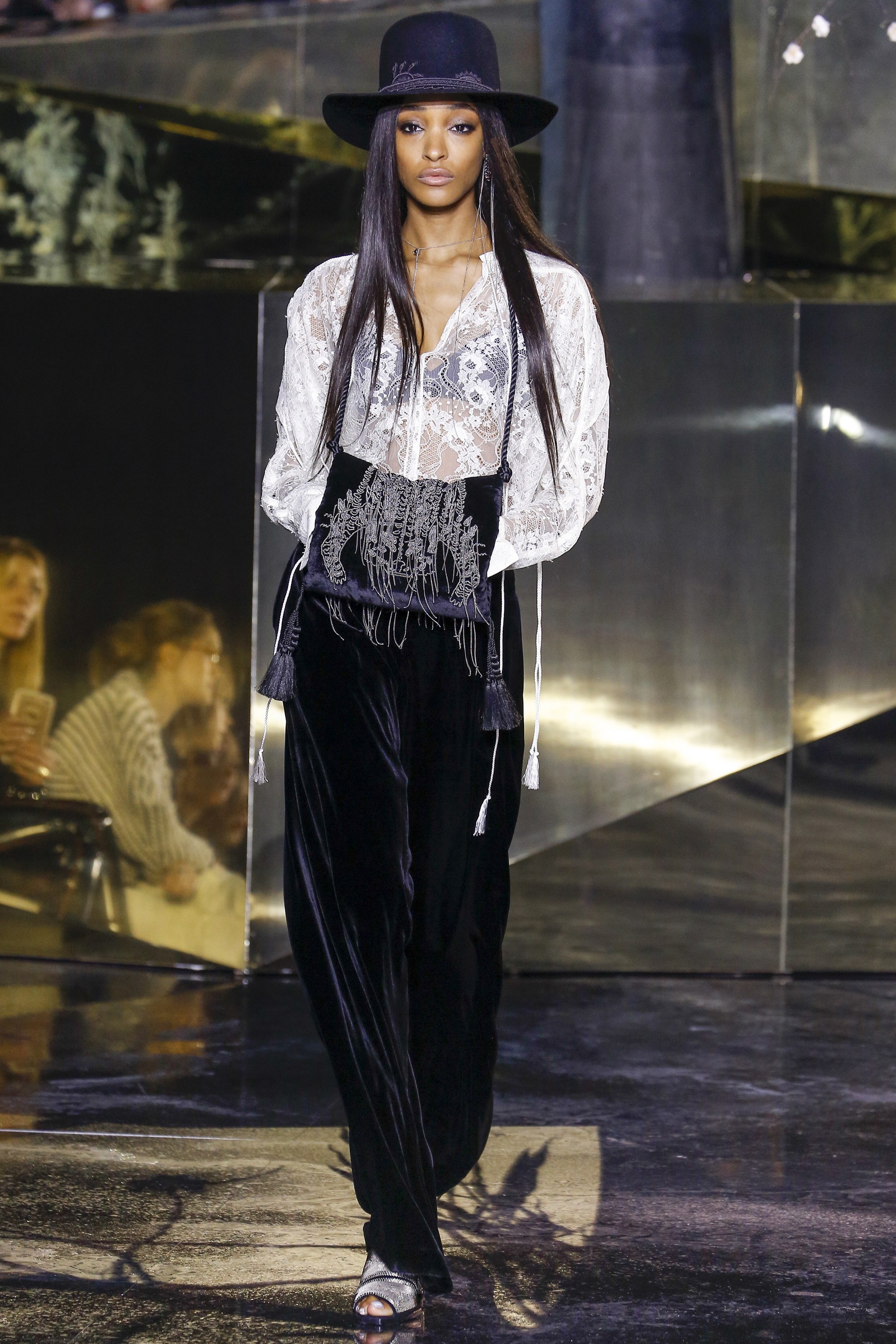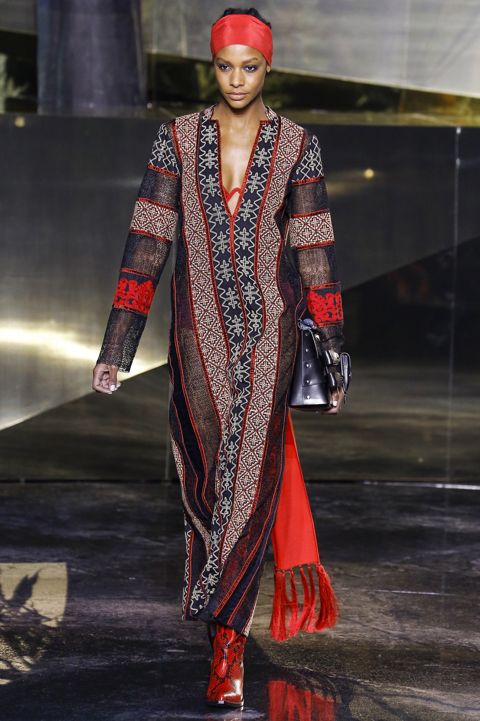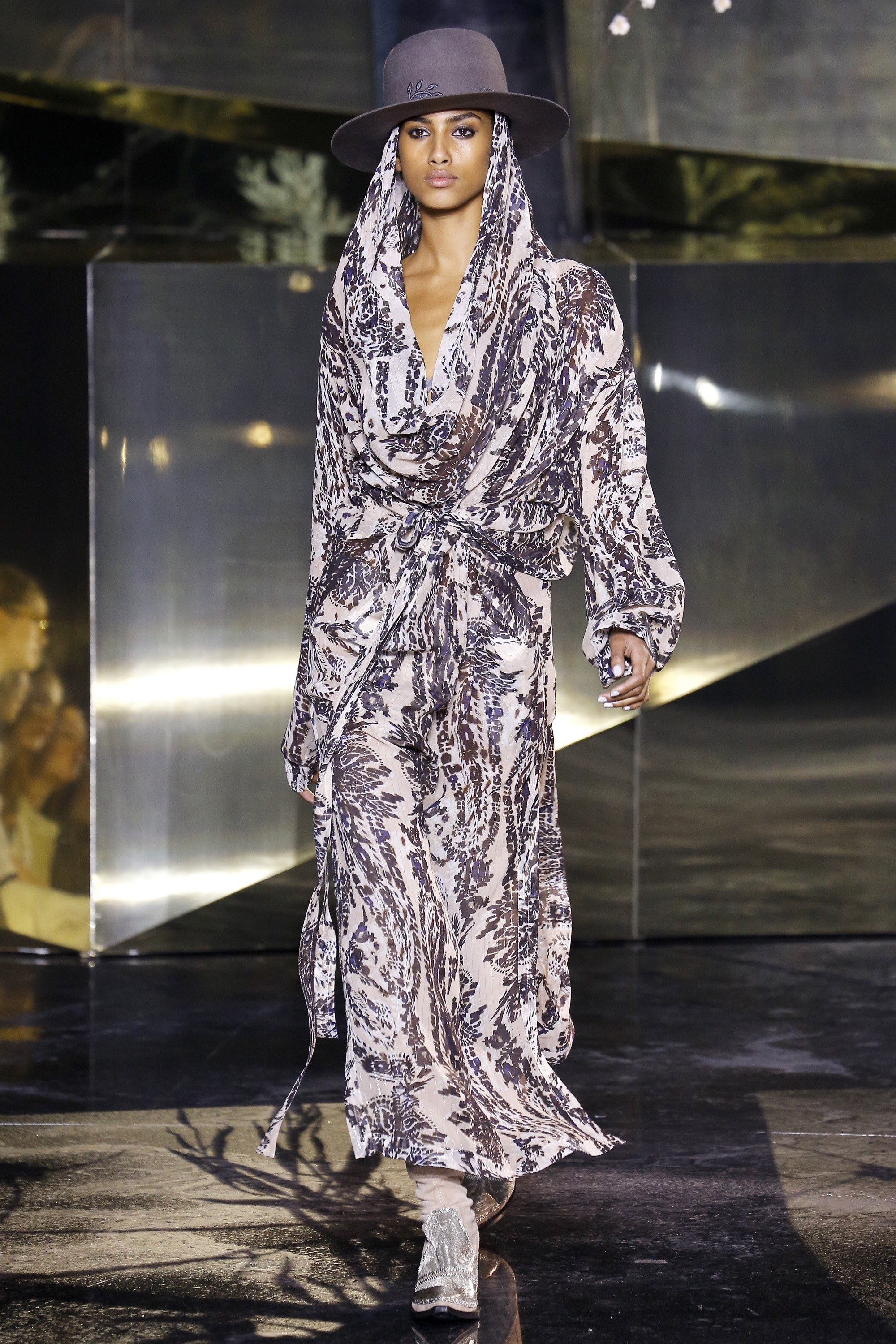 The cast was a roster of heavy hitters with supermodels Pat Cleveland, Amber Valletta, Jourdan Dunn, Ashley Graham, and more posing in the ensembles. The assemblage was an ode to Swedish heritage with ankle-length colorful, embroidered frocks giving a nod to traditional Swedish folk dresses and an artful take on the print of the lynx on diaphanous trousers, tunics, and even a jumpsuit.