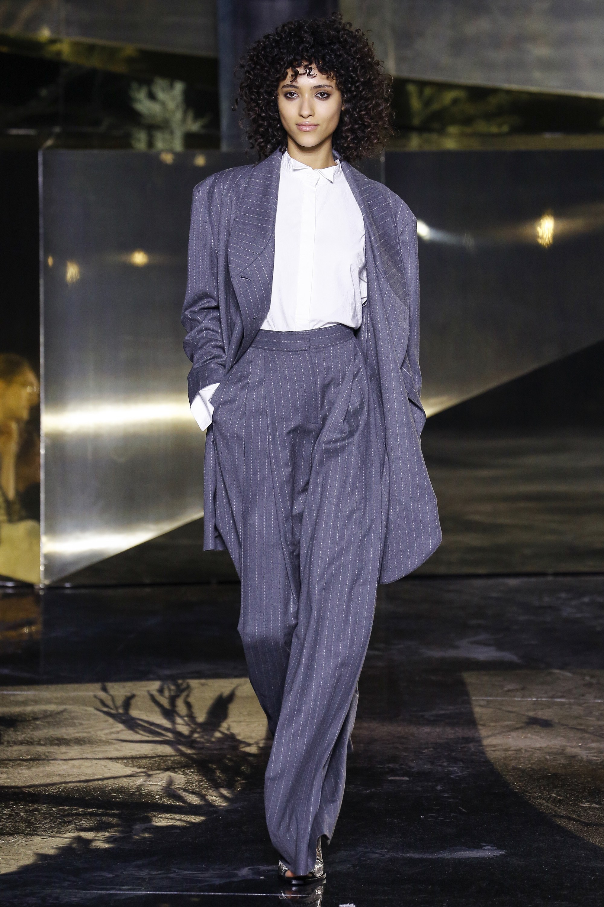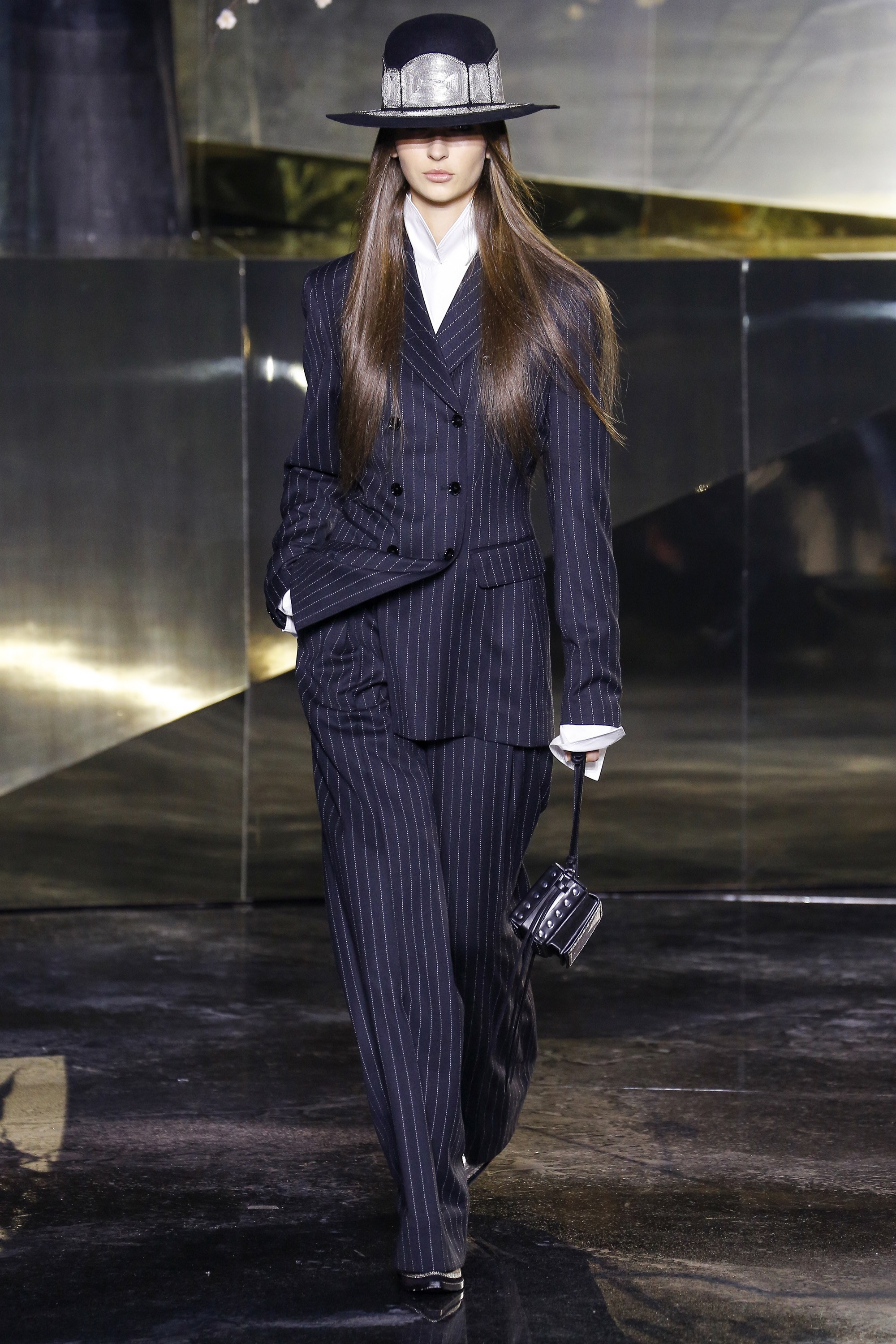 The 80’s were captured with pinstripe bustiers, high-waist roomy pants, power suits, and double-slit pencil skirts.