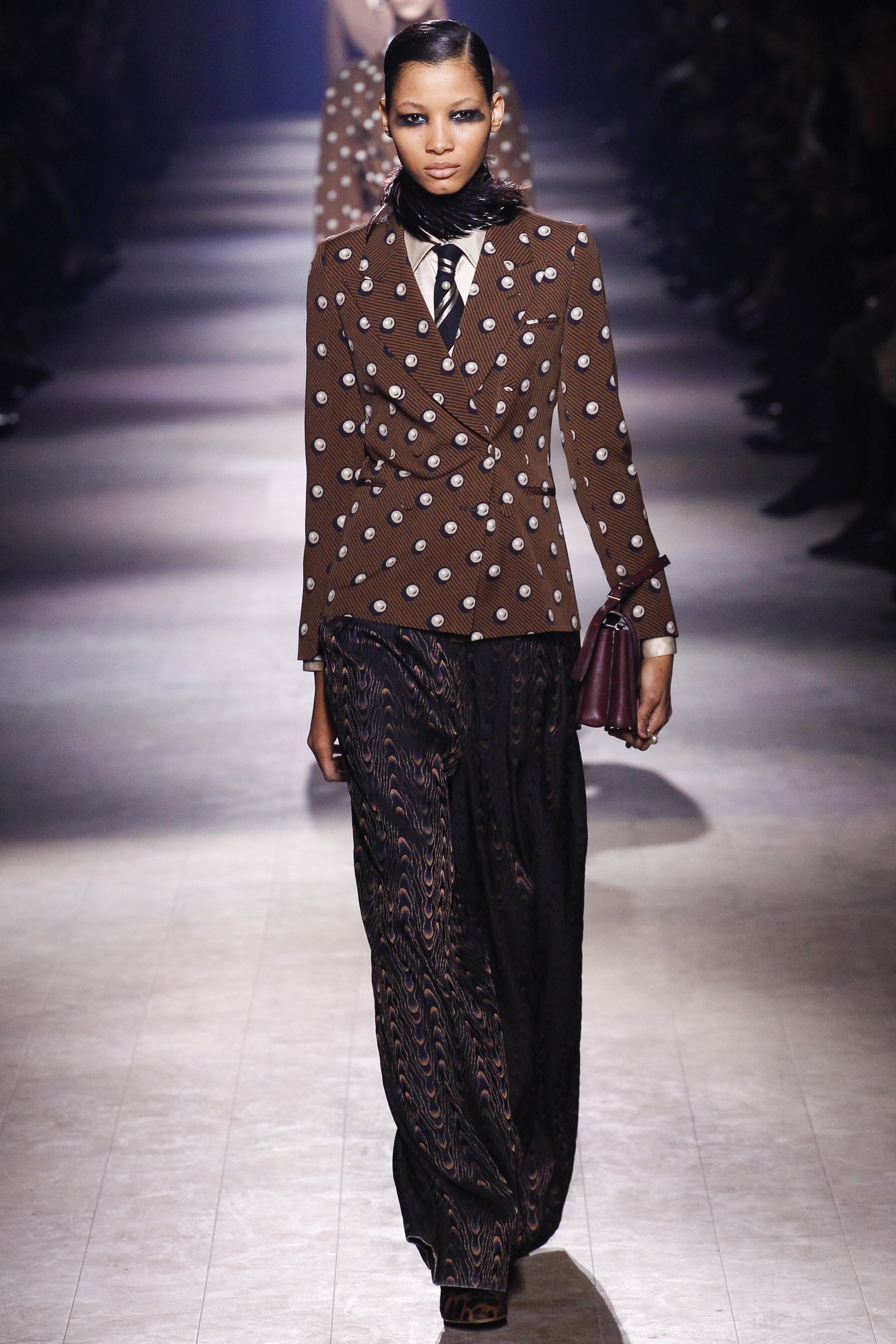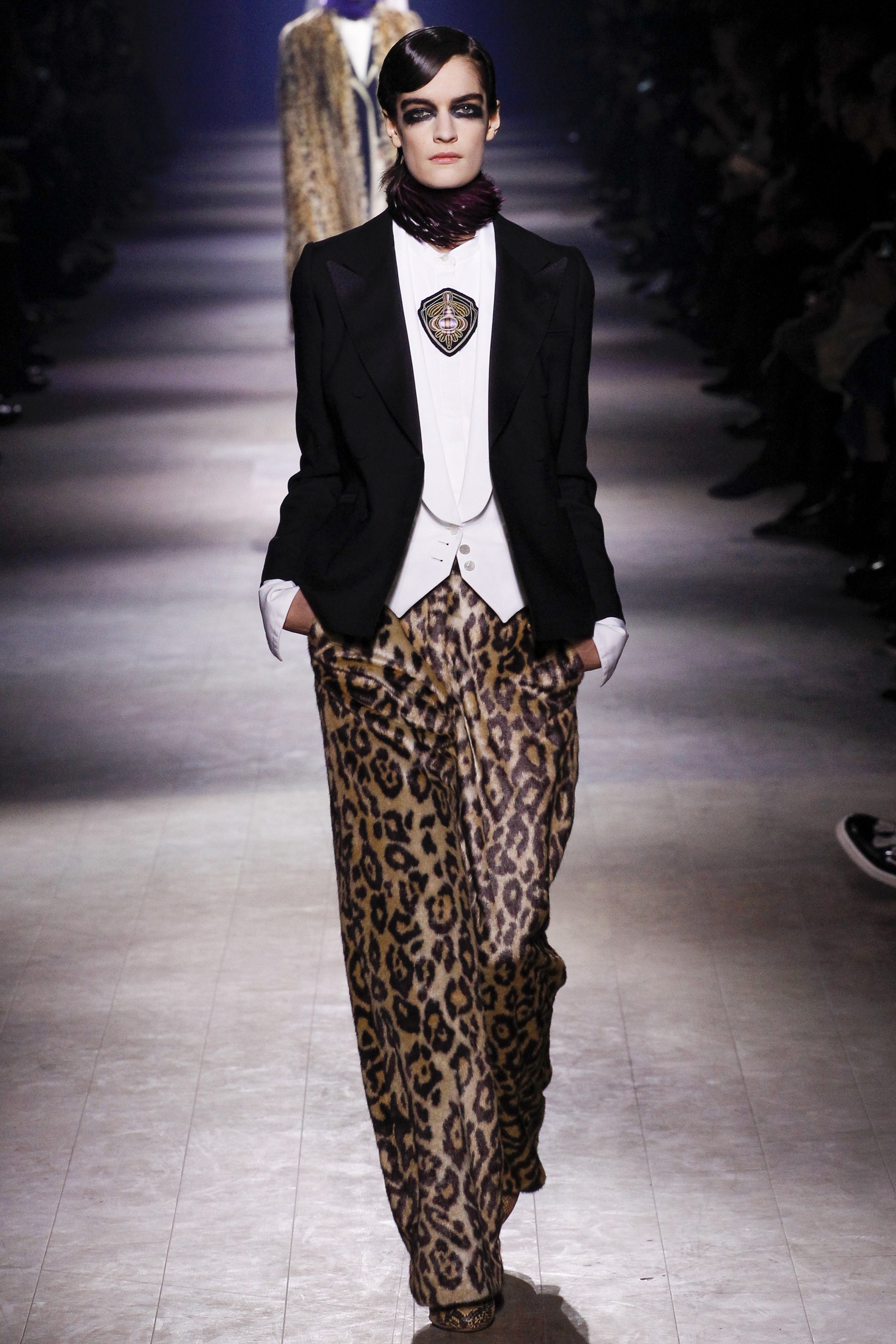 If you’ve read our previous takes on Dries Van Noten, then you know that team FBD (and Rihanna!) supports the brand’s decadent, art/history/nature-inspired masterpieces. 20th-century femme fatale Marchesa Luisa Casati and the poet Gabriele D’Annunzio were the source of inspiration for the 66-piece collection. The smudged eyeshadow, the cricket sweaters, and the leopard-print pants were lasting touches – it was all controlled drama and in the only way we have come to expect from Dries Van Noten.