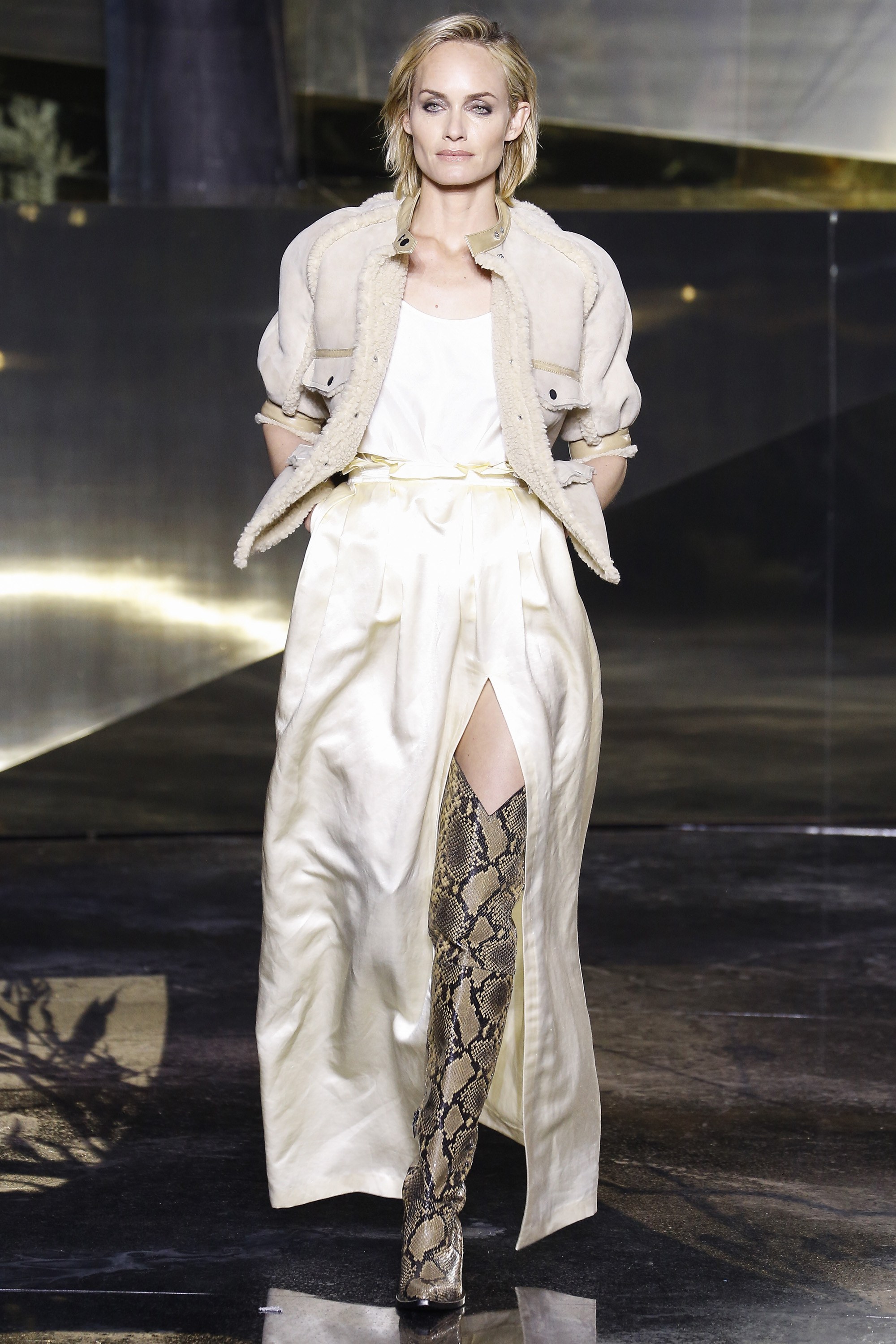 Major excitement was afoot for H&M Studio‘s Fall 2016 RTW collection. The Swedish fast fashion retailer brought out the big guns with a super-famous model line-up. Amber Valletta, Jourdan Dunn, and Natasha Poly led the pack, followed by powerhouses Ashley Graham, Andreja Pejic, Pat and daughter Anna Cleveland. But what about the clothes? Traditional Swedish folk dress was reconstructed into clever crop tops and over-the-knee boots – at least it was a modern-day interpretation.