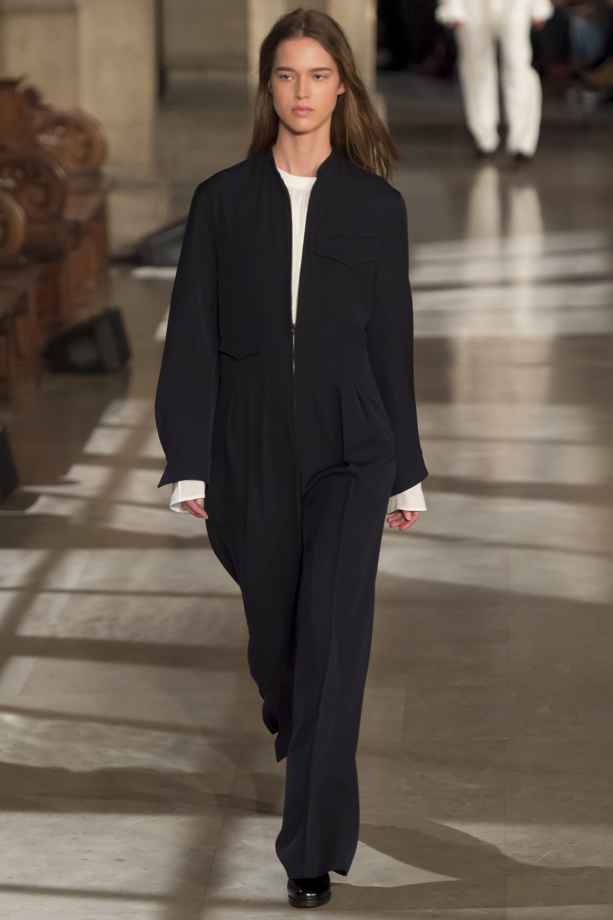 Vionnet‘s musical ode to the piano, harpsichord, and accordion generated flowing gowns accented with geometric detailing while Lemaire put forth a rationalized offering, simple pieces in neutral tones. Cédric Charlier played with the seaside through sailor buttons that trimmed pants, jackets, and even a honey-yellow knit dress.