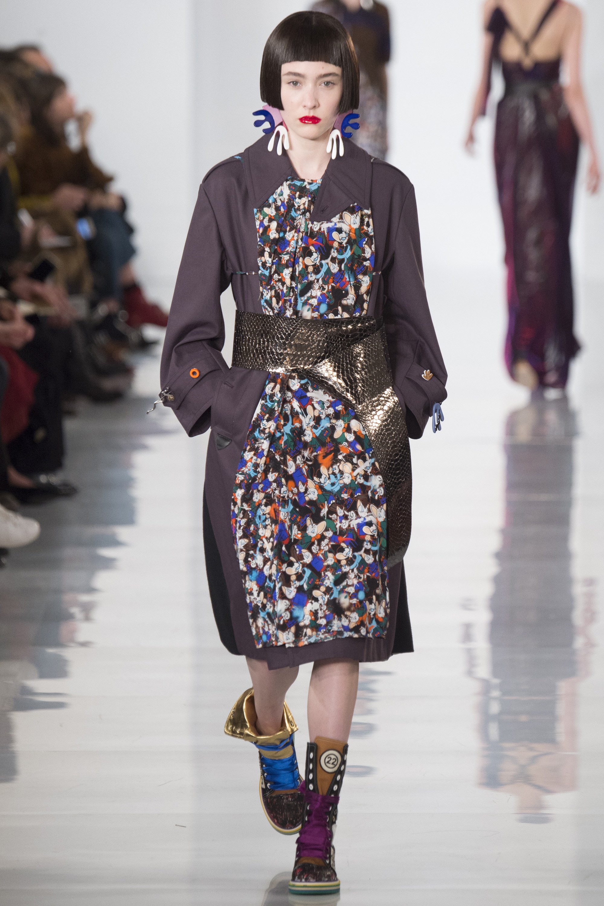 Creative director John Galliano has certainly found his footing at Maison Margiela. This collection was all about ‘beauty and brutality . . . surrealism and realism.’ Yes, these were somewhat vague terms, but it also meant that almost anything could go for his Fall 2016 RTW presentation. Models were walking embodiments of this scattered symphony with dyed hair, comical waist-cinching belts, green clover decals, and military coats; however, with Galliano, we must celebrate the method to his madness.
