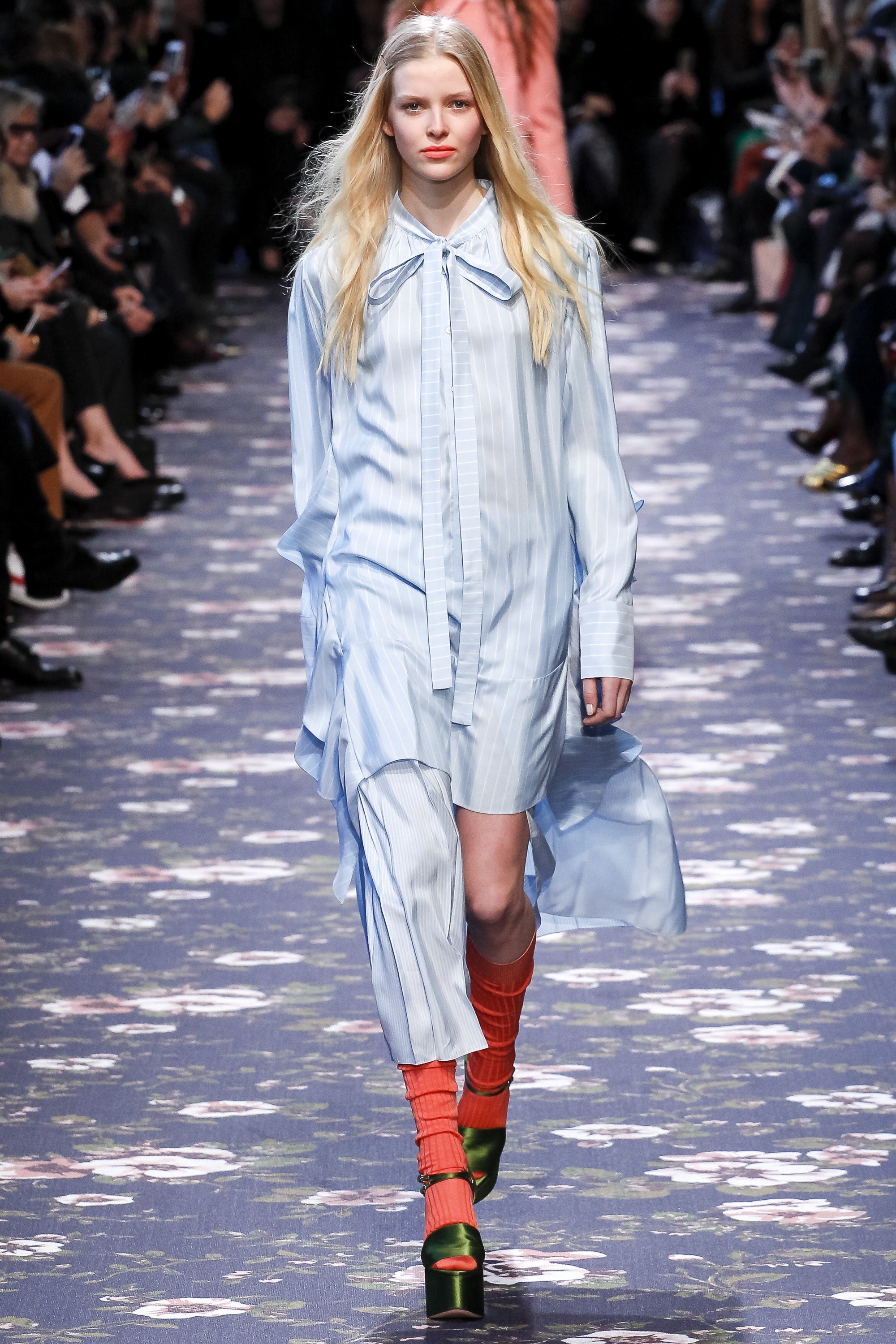 Dreamy was the word of the hour and so much so, at times the Rochas Fall 2016 RTW collection felt like Spring. Save for a few heavy fur coats, the collection was super bright color-wise: citrus, peach, orange, and chartreuse added shots of lightness. Socks and satin platforms were the perfect festive accessories for Rochas’ version of fall. Even better, you can order looks straight off the runway next week, à la Moda Operandi.