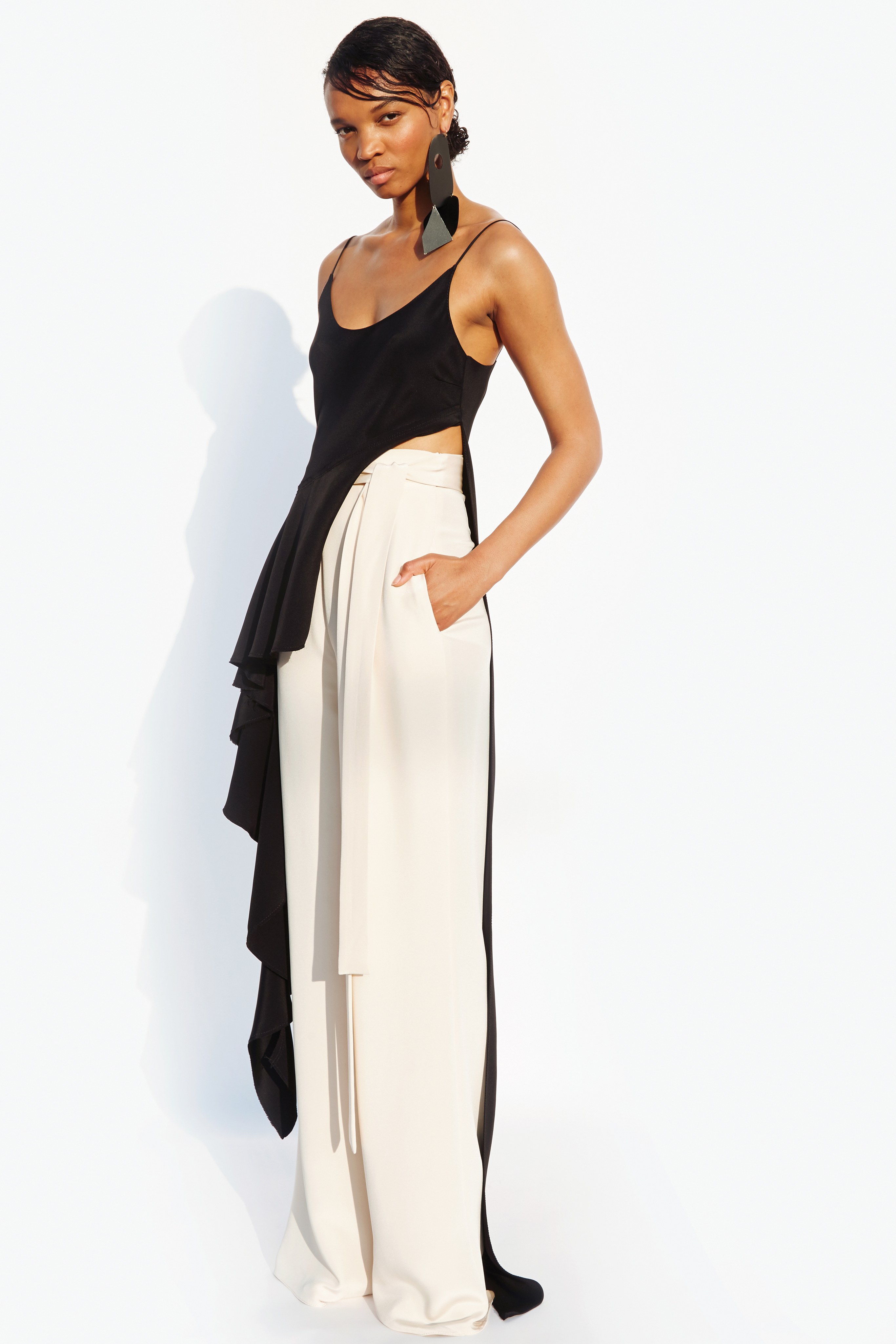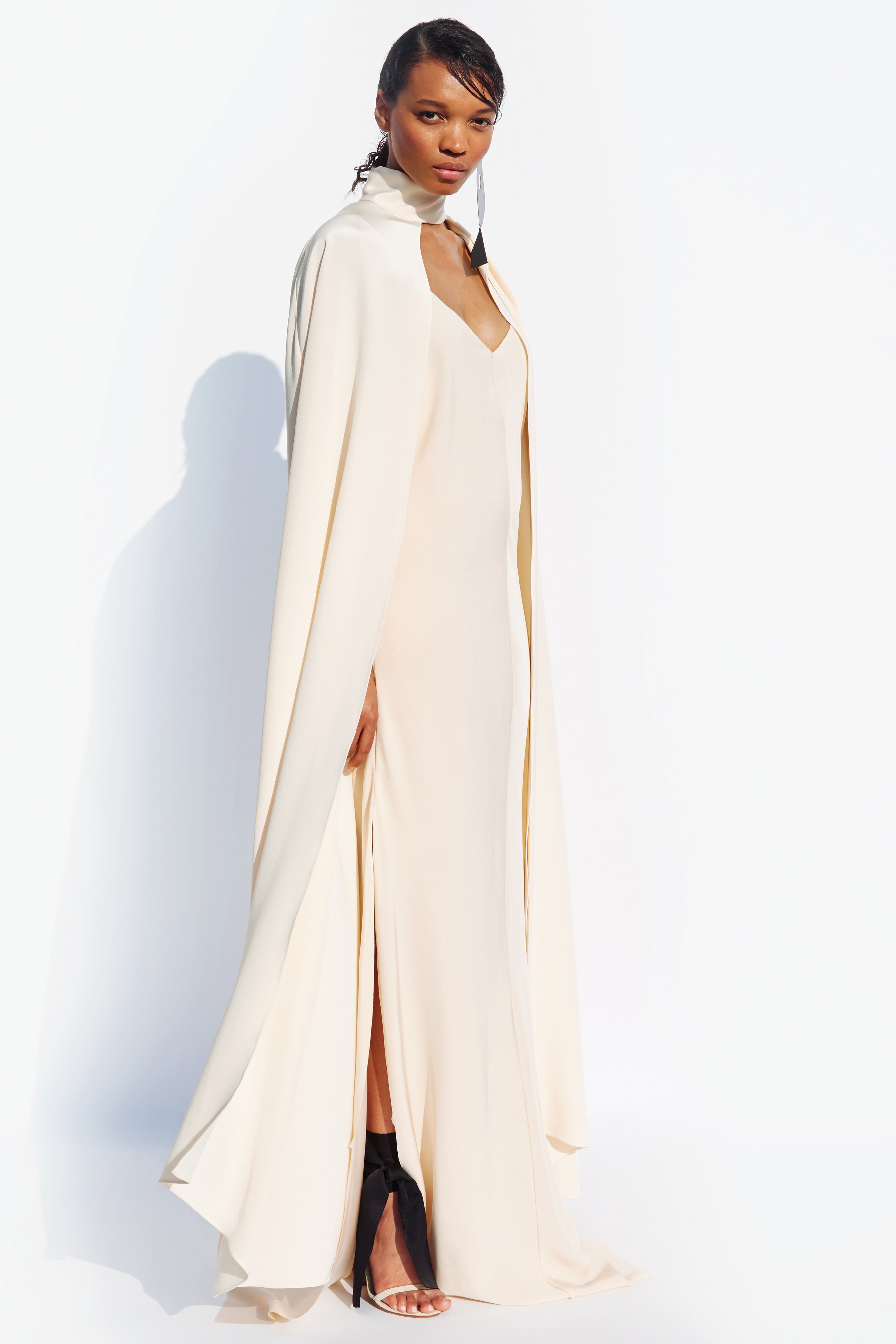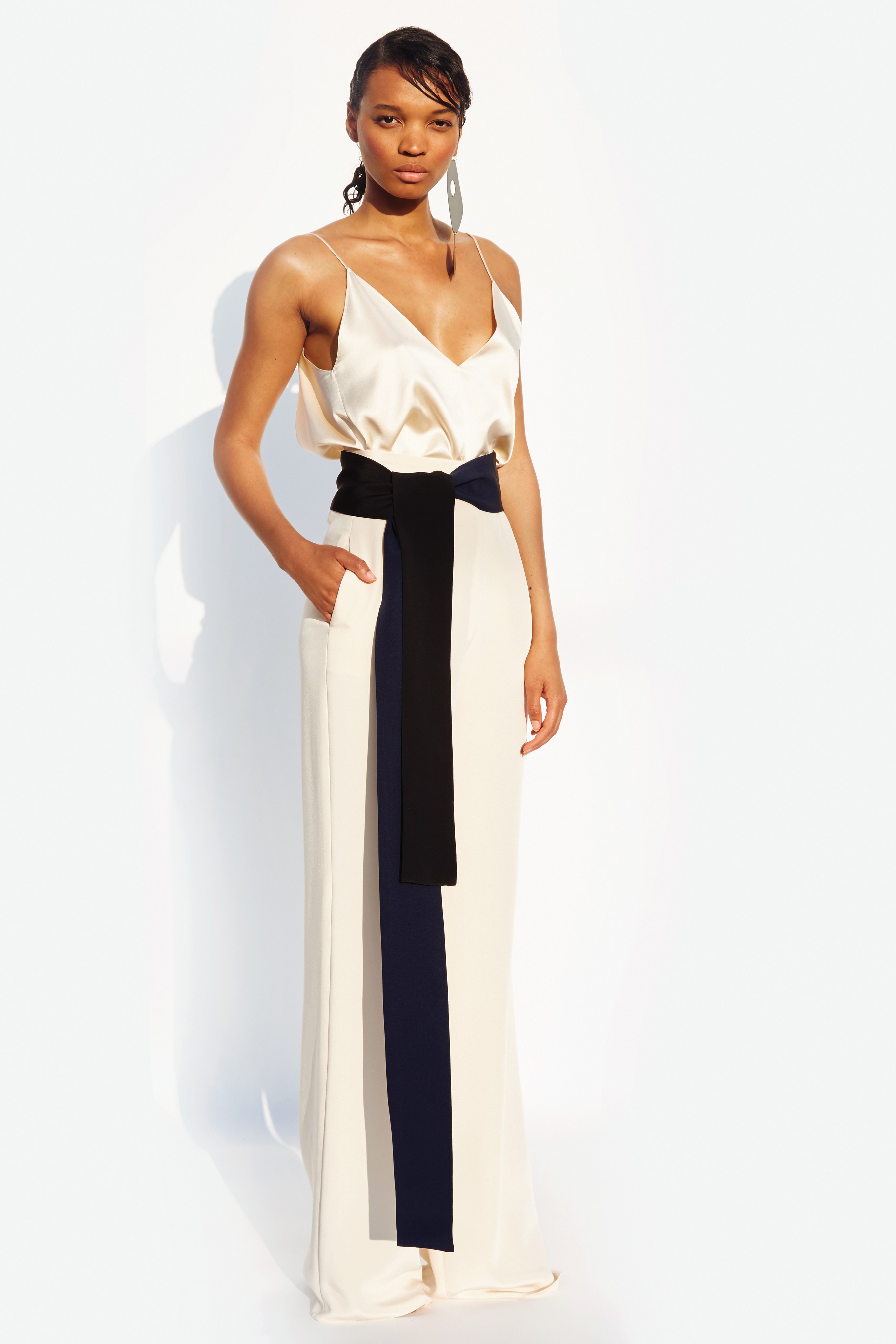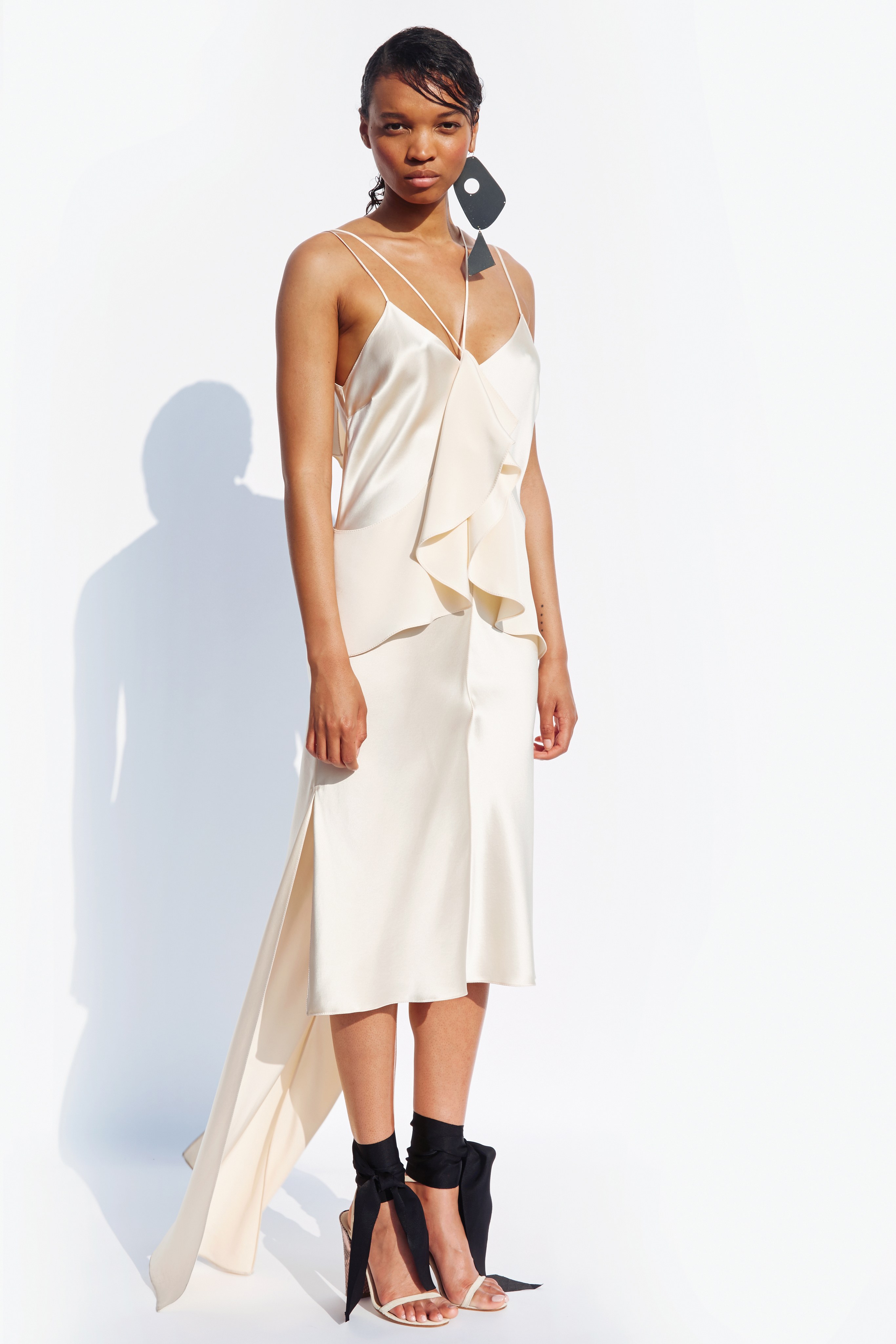 The romance and glamour of dinners and dances in South America in the 60’s and 70’s were Juan Carlos Obando’s inspiration for Fall 2016: the kind he would have witnessed as a child in Barranquilla, Colombia as he isn’t yet forty. Grace and gesture are signatures of his brand and he continued with that love of flow and motility by way of undulating ruffles, thigh-high slits, tie-waists, and cutout shoulders.