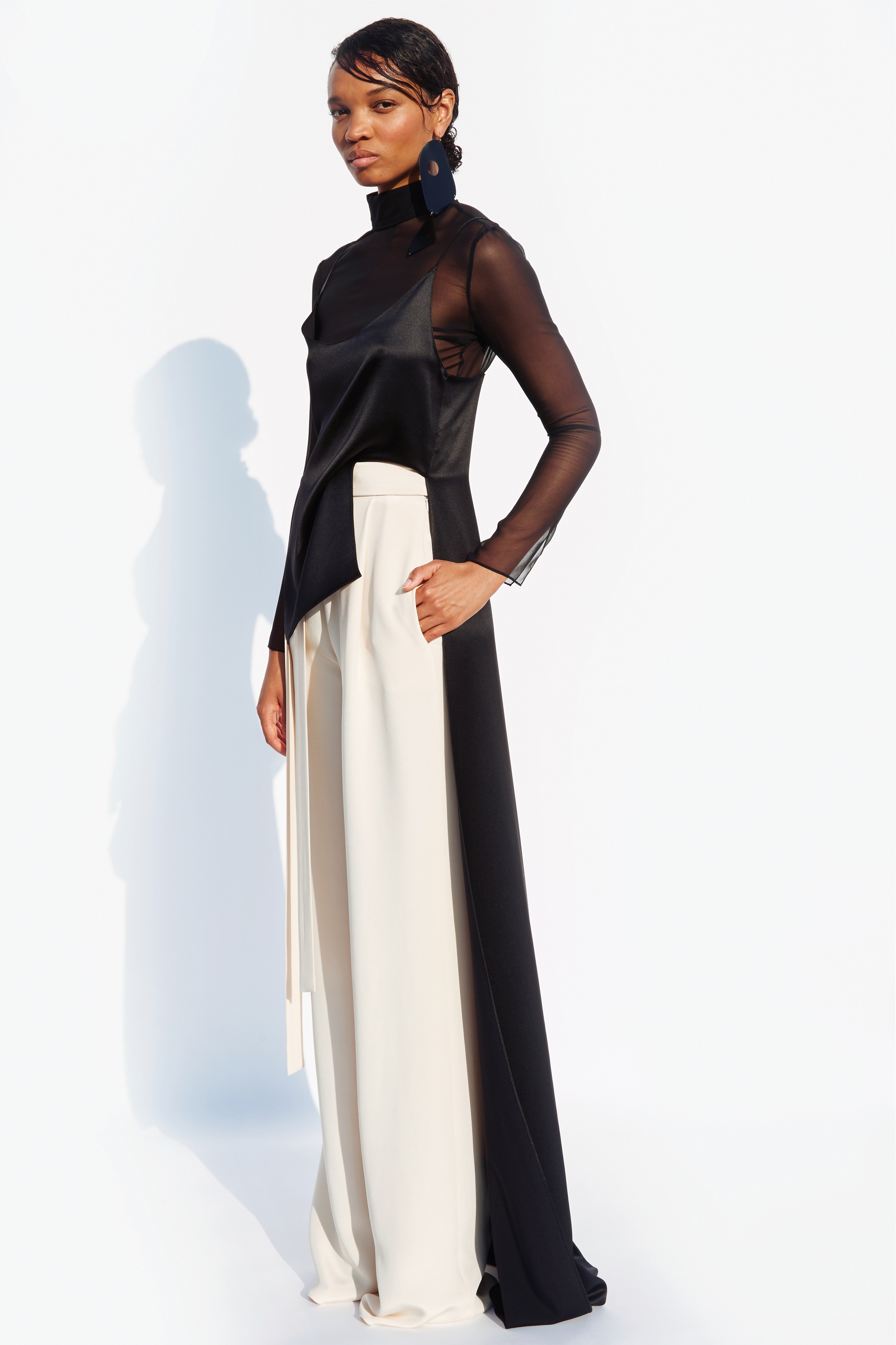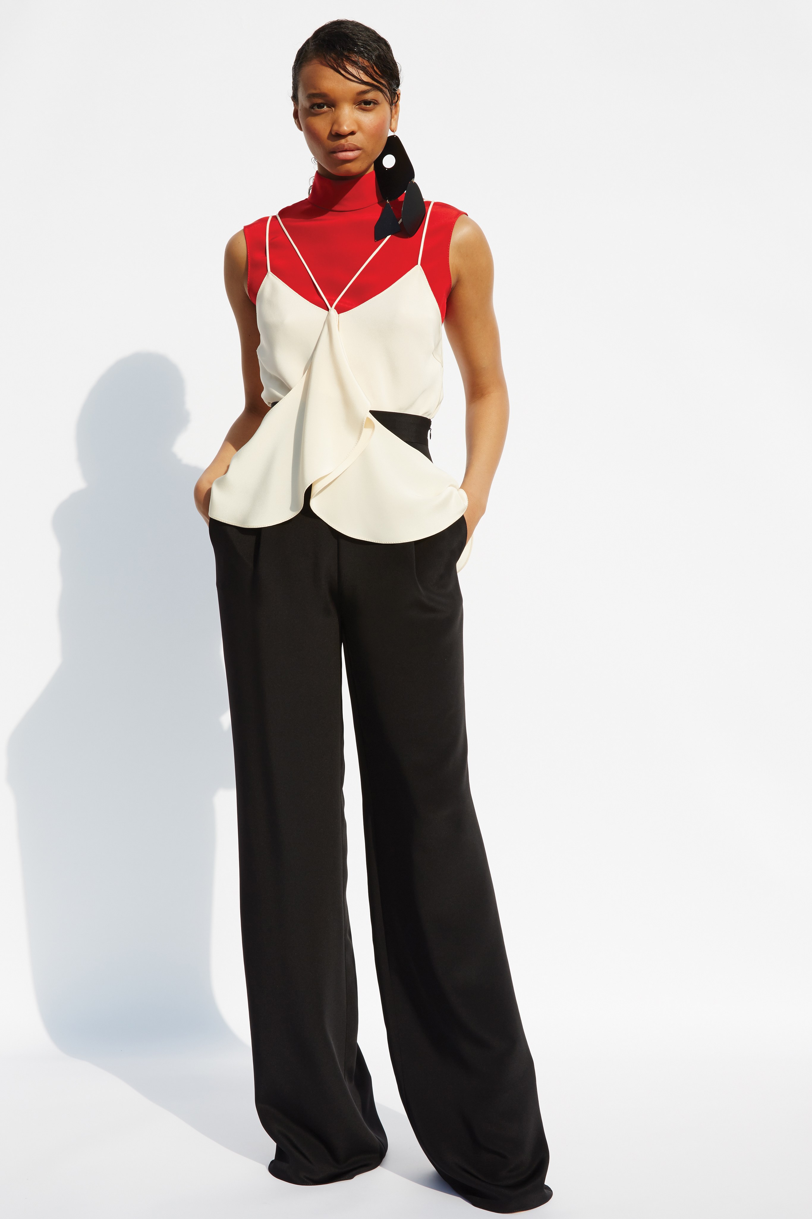 Obando sure knows how to create a statement-making detail. Pairing a single, head-turning and collarbone-grazing earring with any ensemble will most likely get a woman noticed, though layering a sleeveless turtleneck over a ruffle-accented top with a strappy neckline can easily do the same.