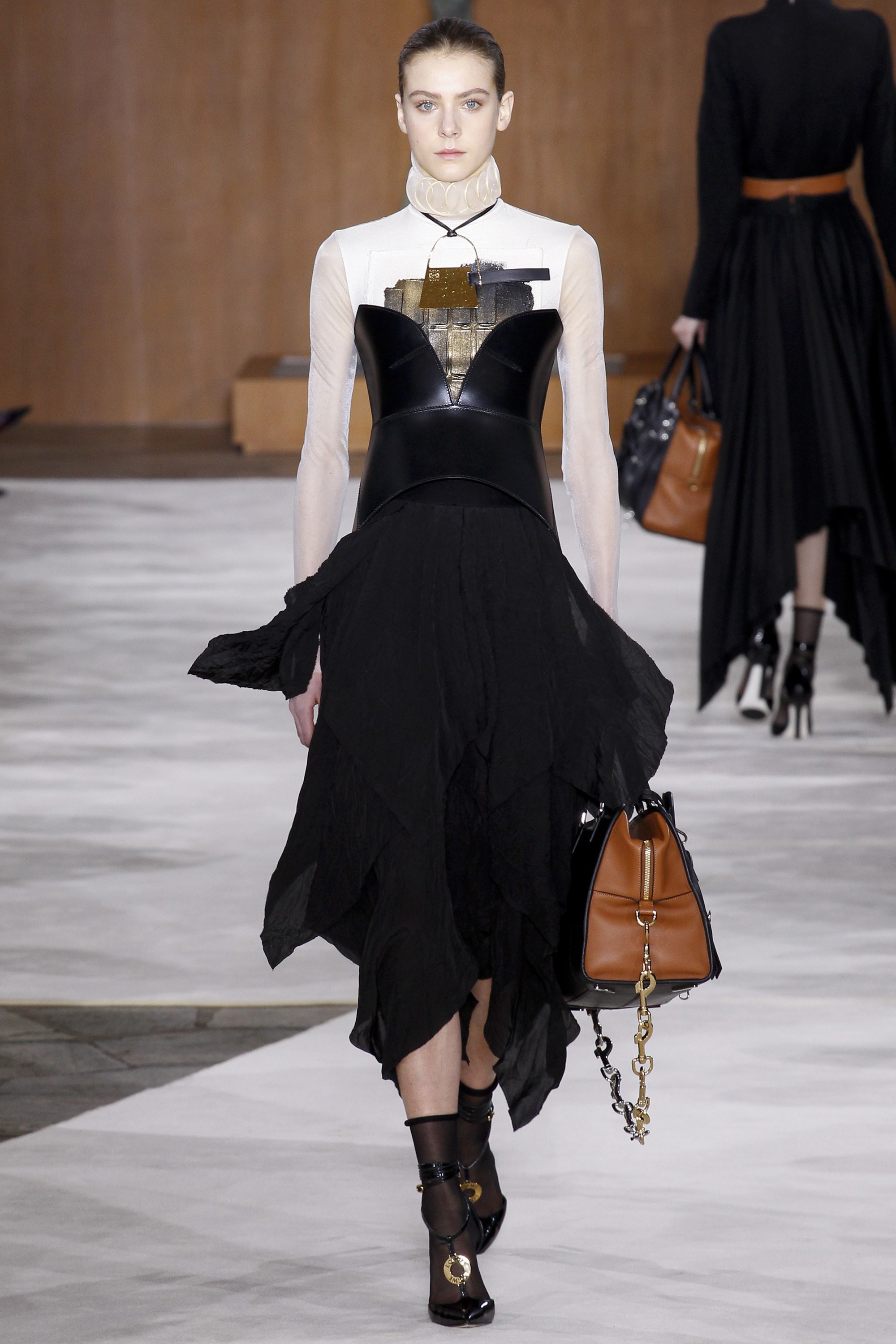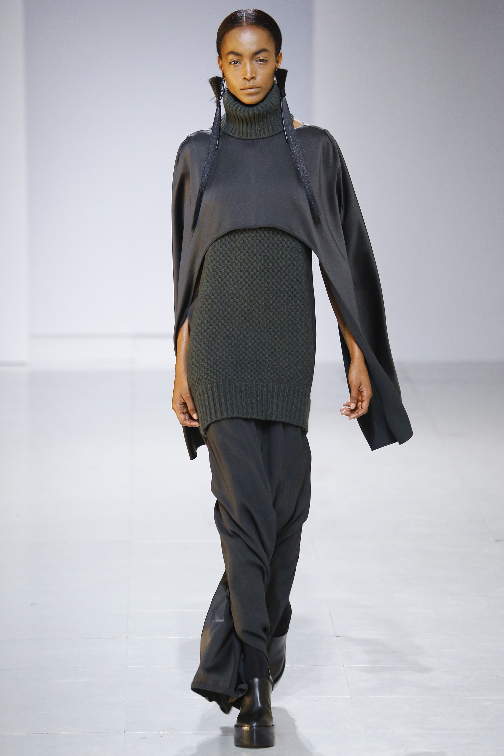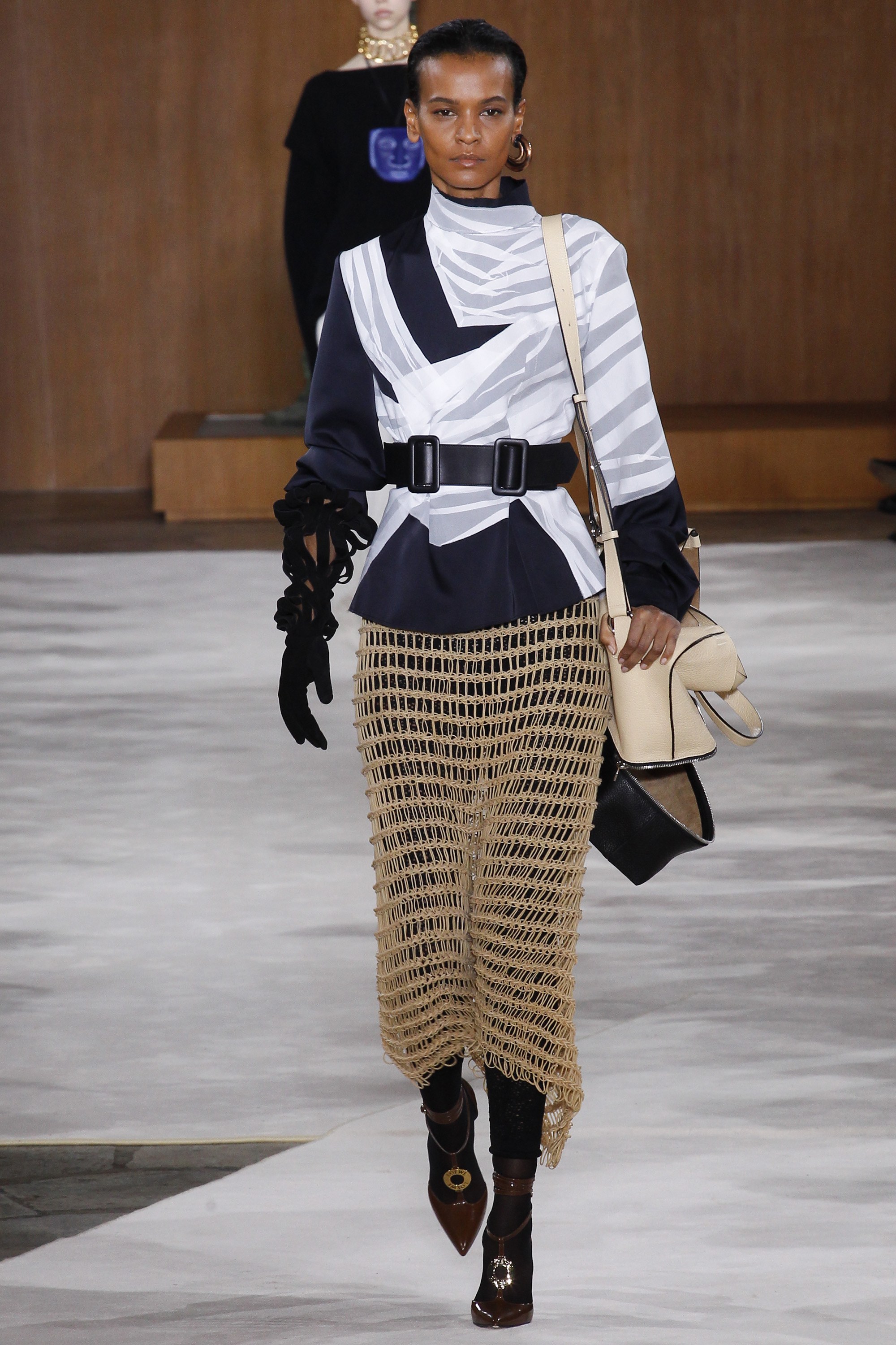 Any time Liya Kebede is spotted as part of a runway line-up, you have our interest piqued! At Loewe‘s Fall 2016 RTW show, mega-model Kebede could be seen wearing a single fringed glove, a bandaged top, and a knit skirt with tremendous elegance. Located at the Maison de l’UNESCO in Paris, the Fall 2016 RTW presentation revealed some fascinating cat motifs that hung heavy from the necks of models, who also carried Loewe’s all-famous leather bags.