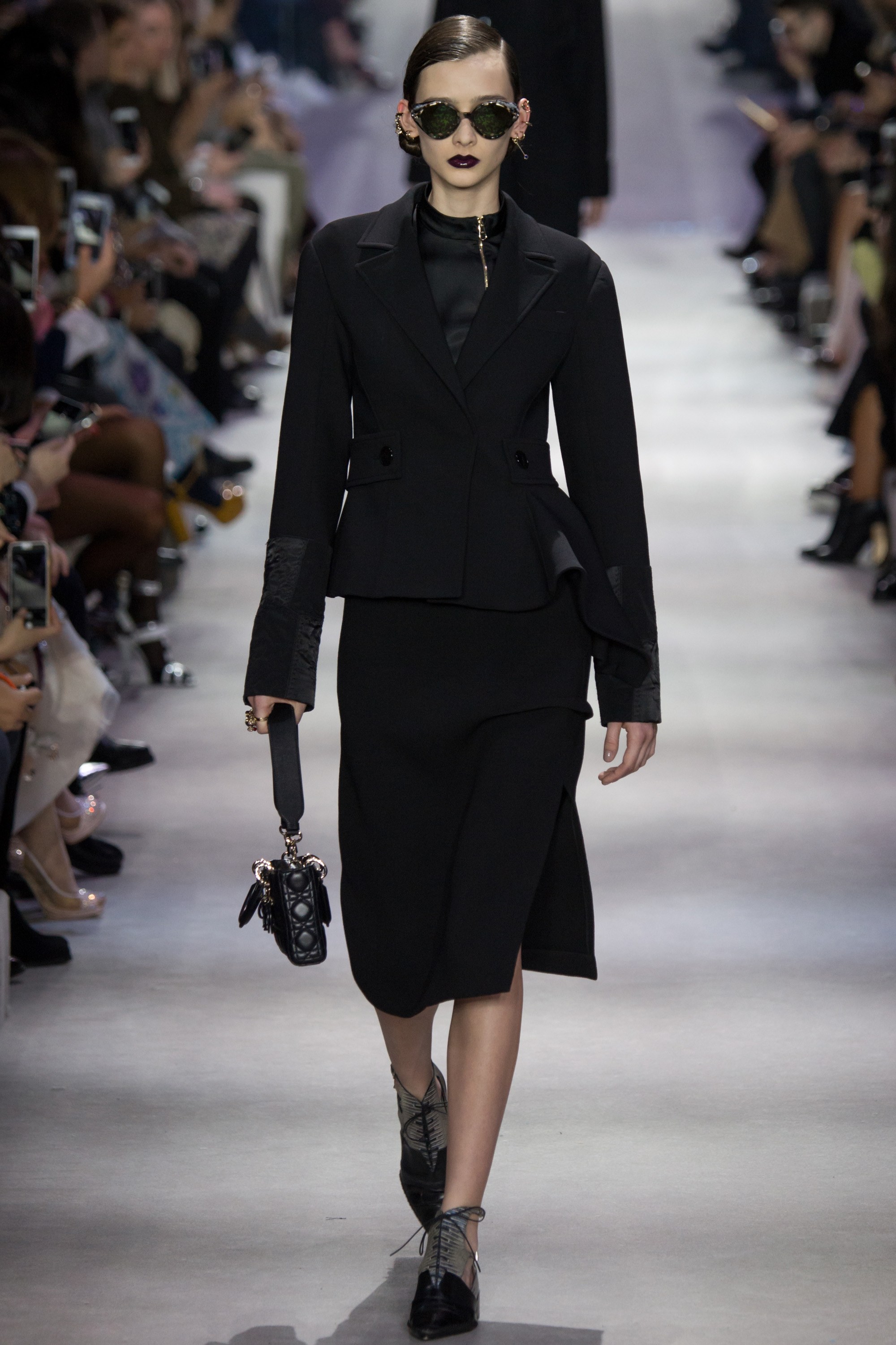The #mirrored set at Christian Dior had to be the most talked about phenomenon of the day. Extending upwards, the oversized mirror looked as though to reflect the entire cityscape. As a replacement has yet to be named since Raf Simons’ departure, the Dior studio team put forth an on-brand 55 piece collection. Although many of the looks were full of black suiting, the vampy black lipstick and coordinating sunglasses added a touch of youthfulness.