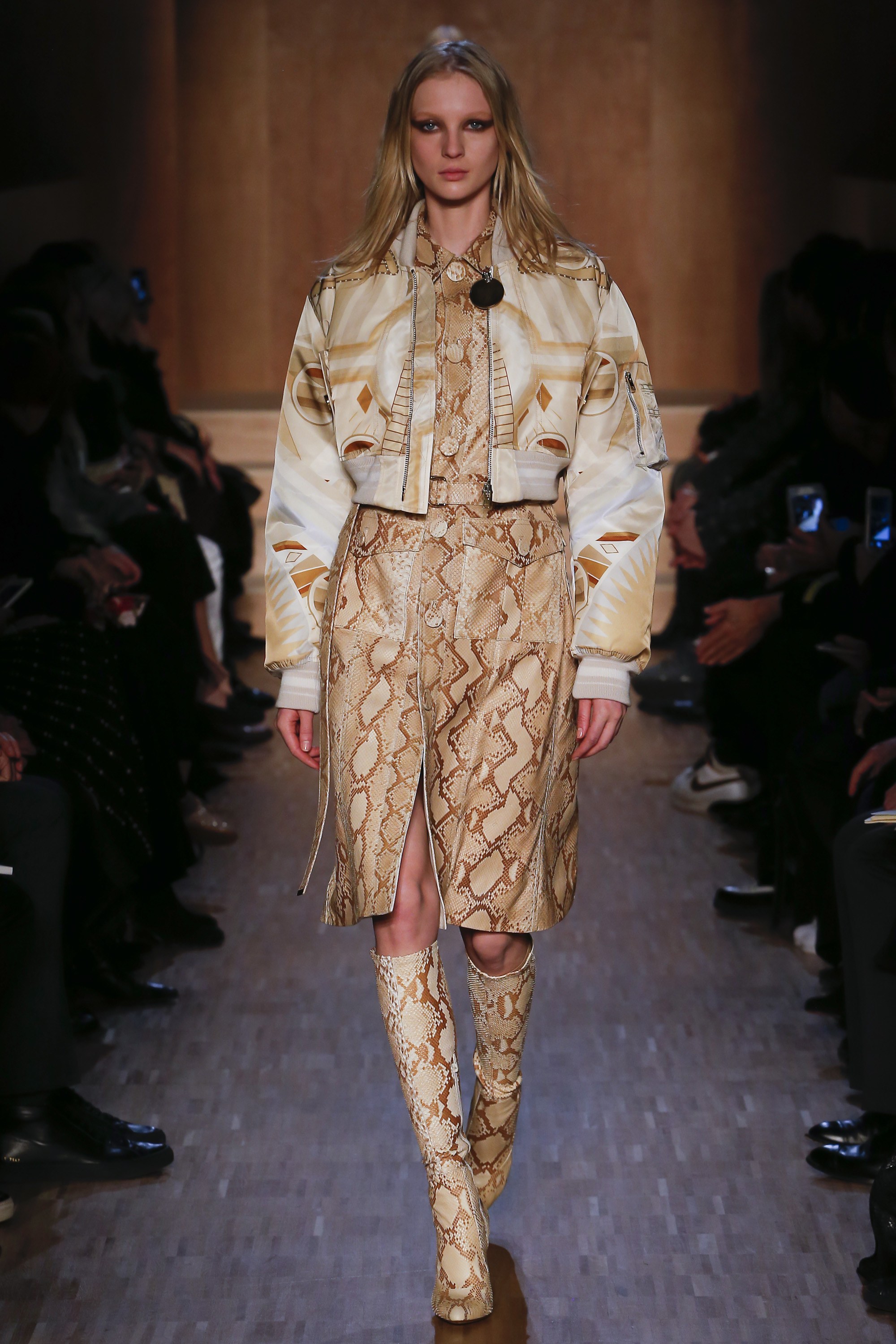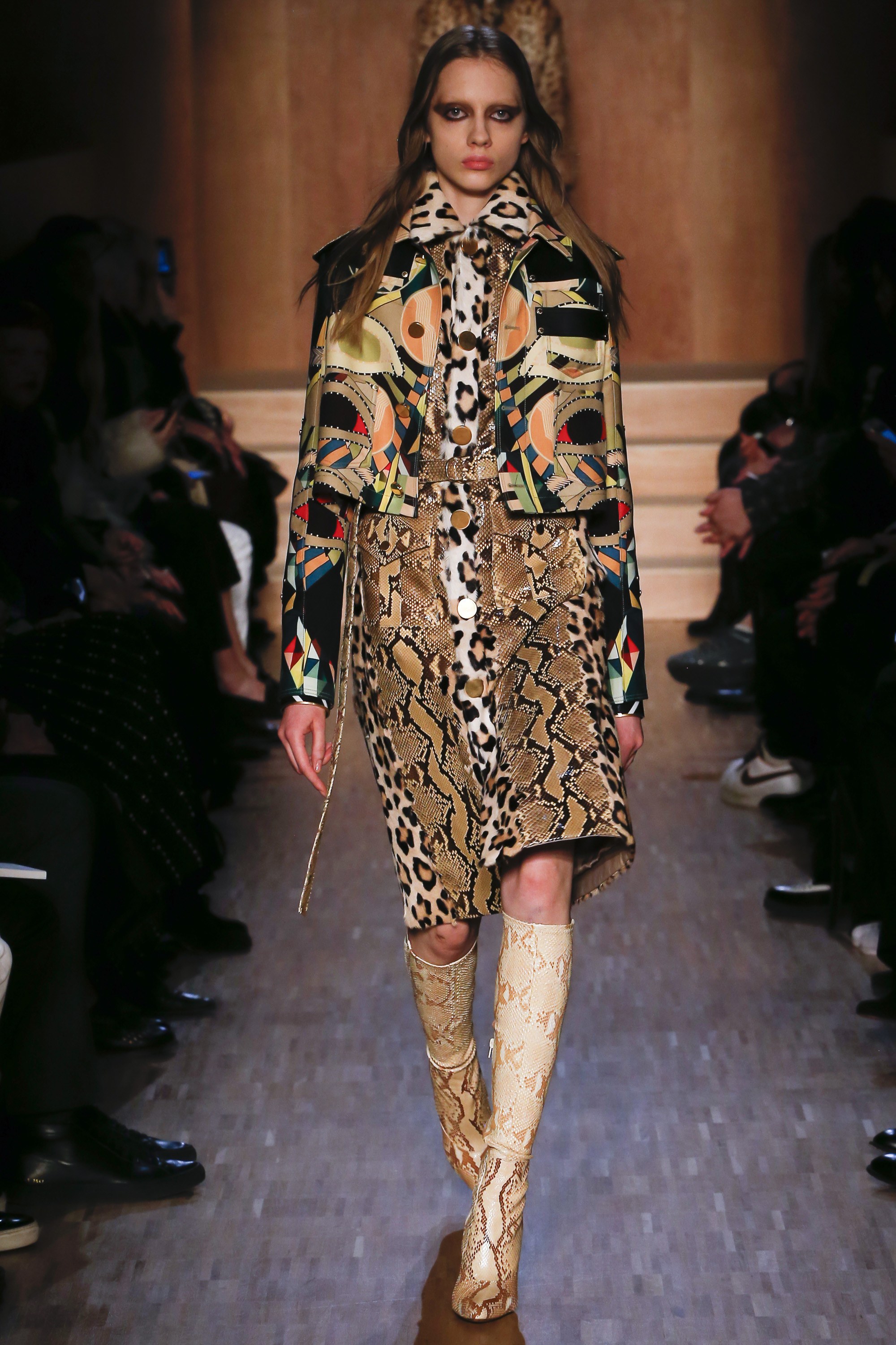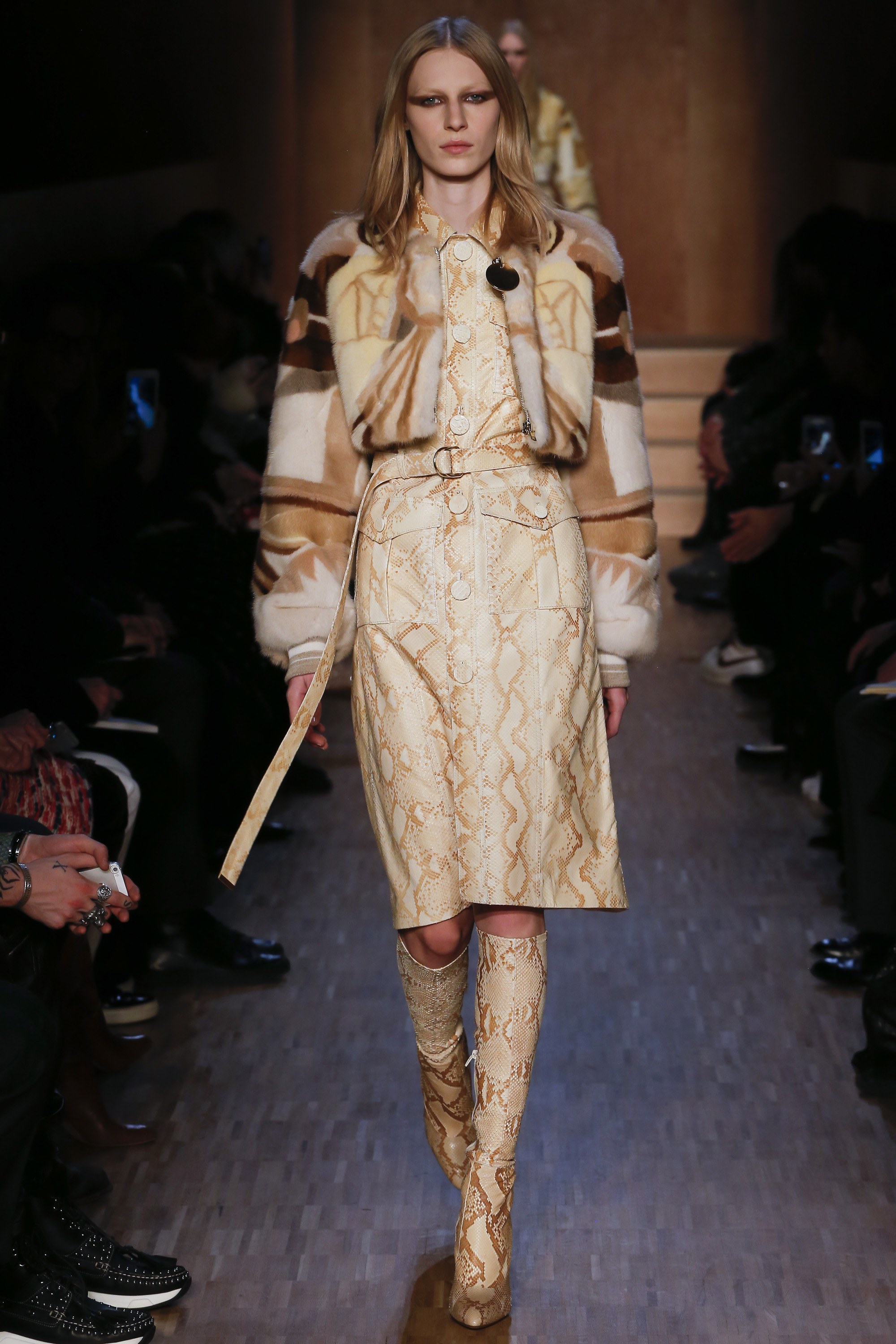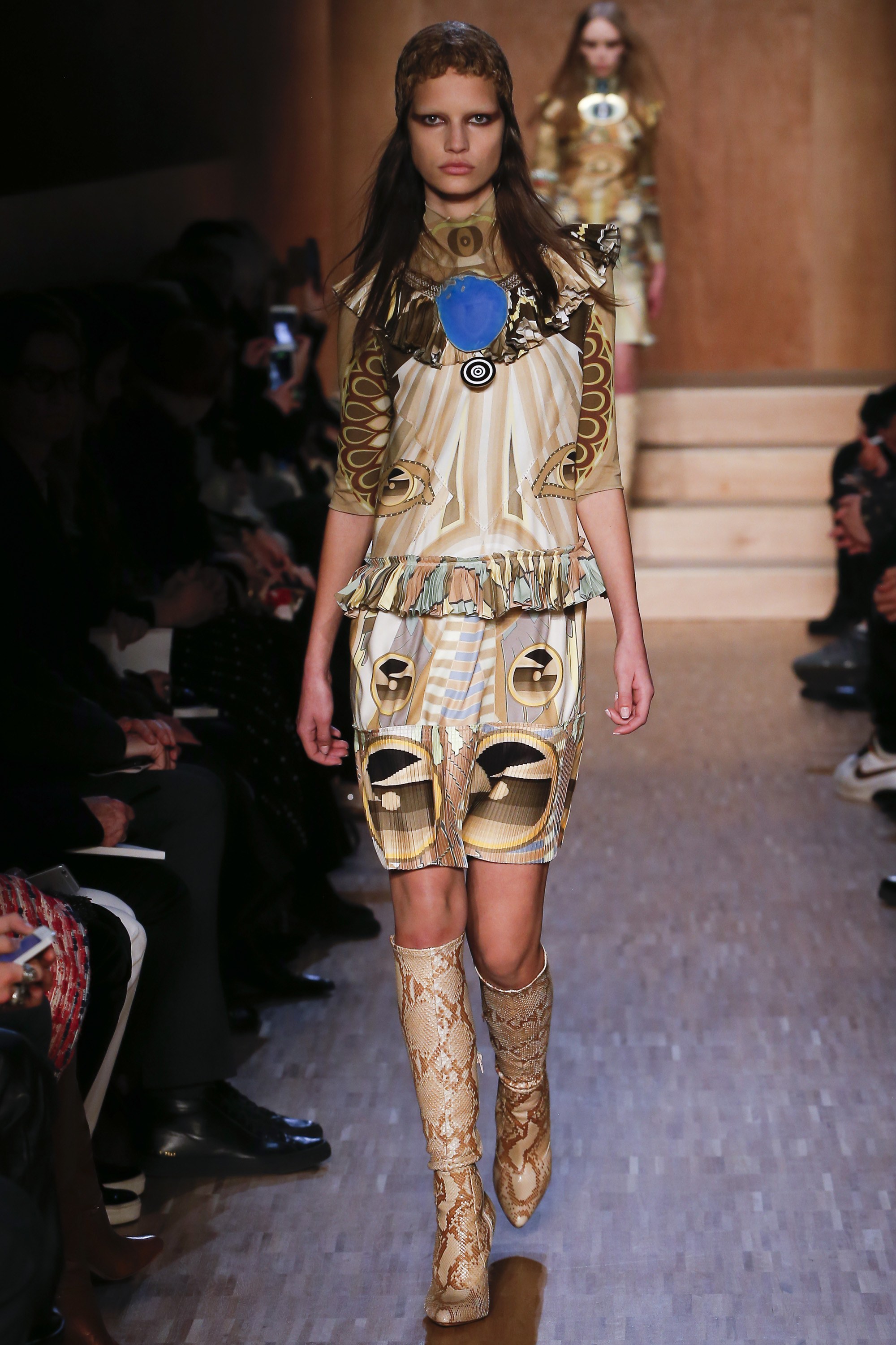 Of course, the seasonality behind Fall calls for darker hues and heavier textures; however, Tisci’s take on this transition was extremely refreshing – rich gold-tinged silks housed the design of the Eye of Horus while other pieces boasted loads of mini-ruffles, sheer layering and beige snakeskin effects.