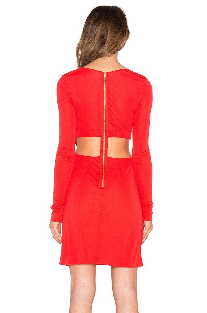 Lala Anthony looked ravishing in red at the Beauty Of Power Event in a $345 Rachel Zoe Shay Red Drape Cutout Long Sleeve Mini Dress: