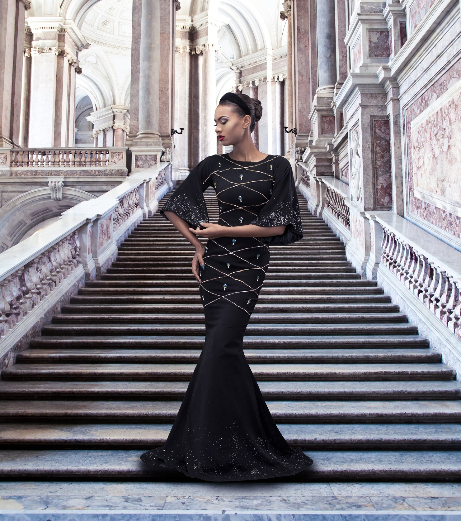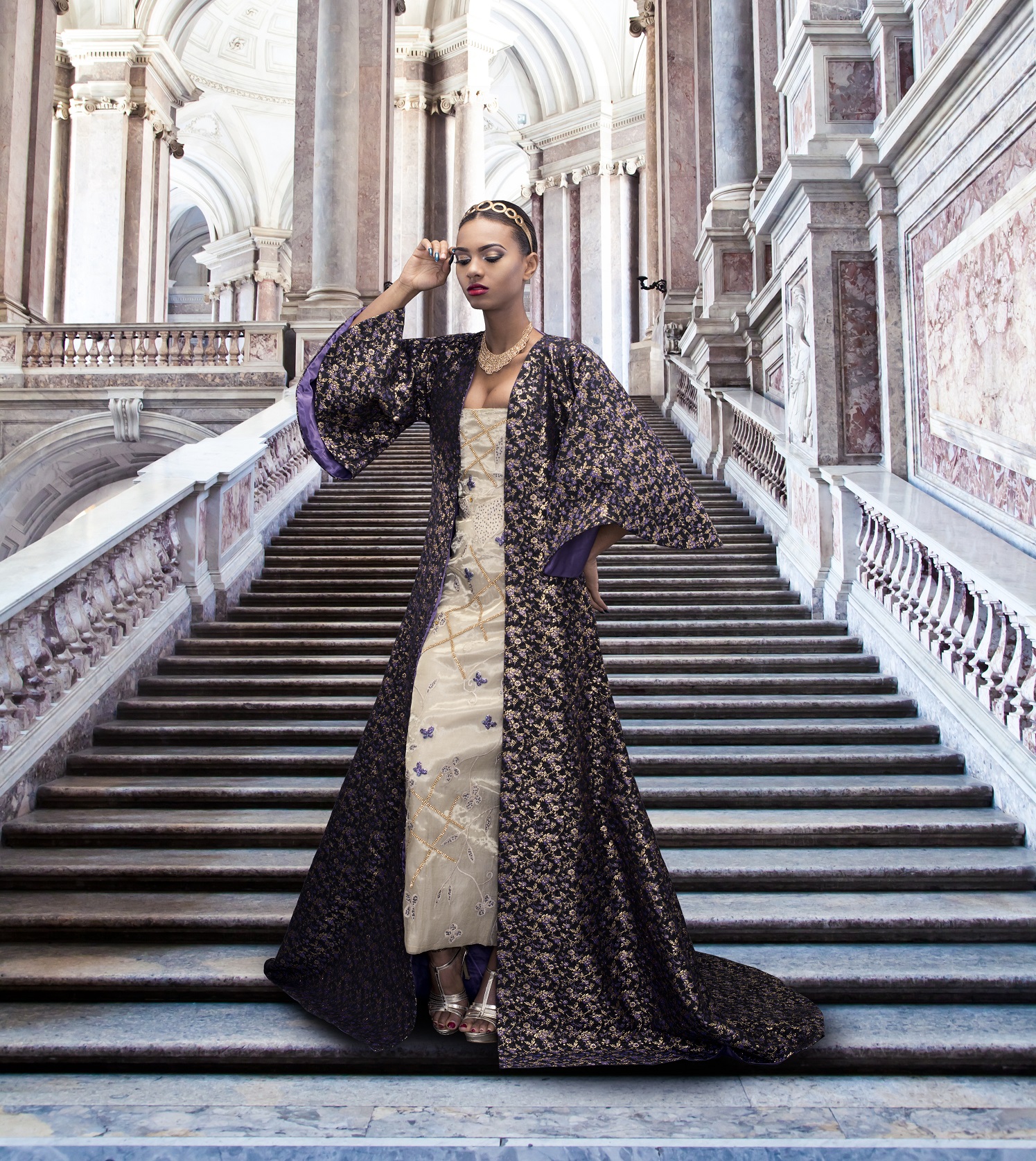 For this presentation, Weiz Dhurm Franklyn “dives into the world of the baroque era, encapsulating the predominant silhouettes of his muses in structural, lustrous embroideries and rich textiles“. With an untouchable confidence, Franklyn’s muses are freed of all sentimentality to be accepted but more fulfilled in further understanding who she really is and her ultimate self worth.