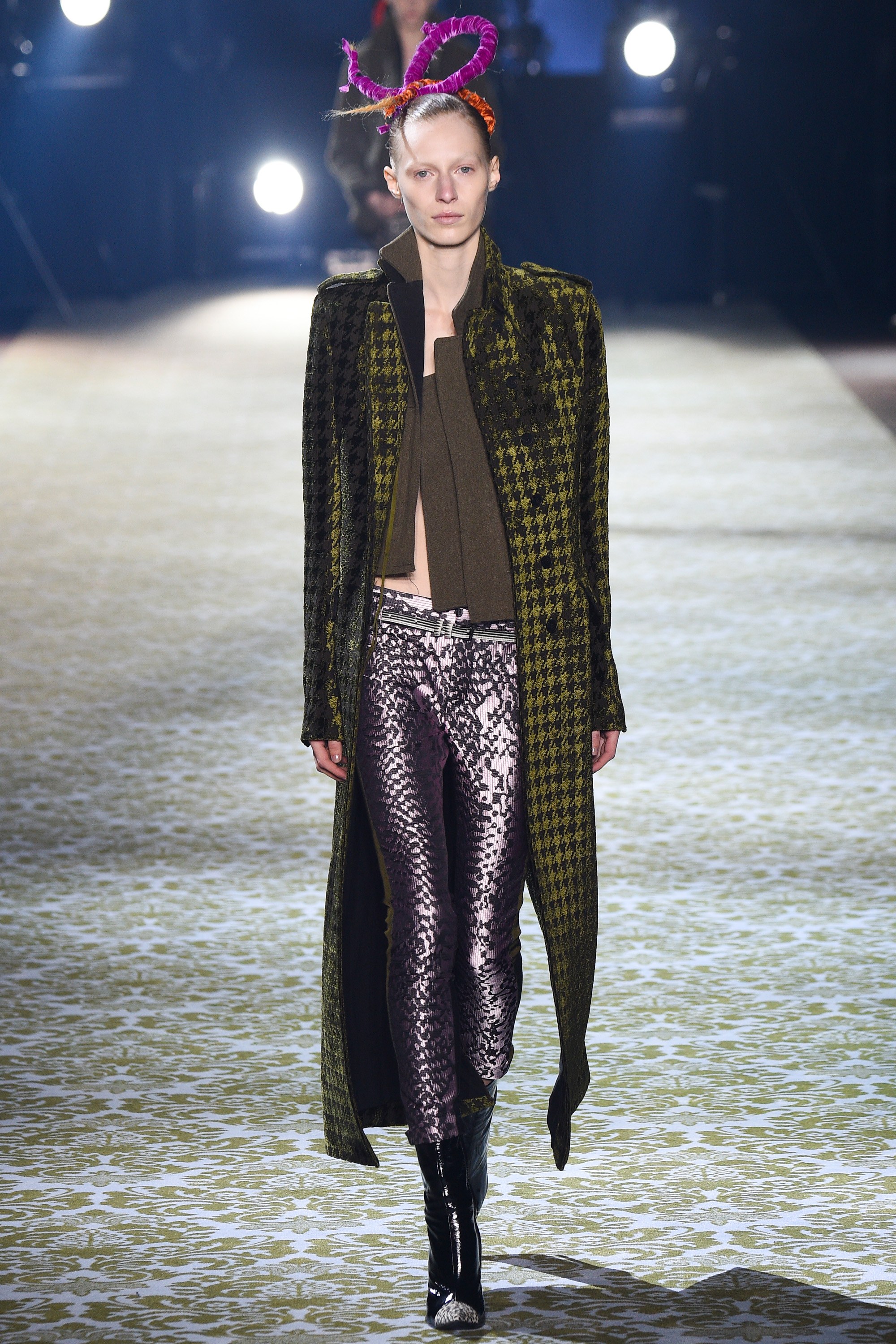Juan Carlos Obando channeled dinner dances of South America past with silk asymmetrical tops and flowing pants with delicate pockets. Rei Kawakubo of Comme des Garçons put forth a triple-threat of floral, upholstery, and armor. Unclear how those three themes fit together? Kawakubo weaved these components into truly wearable art, a turn on the term ‘ready-to-wear.’ Colombian designer Haider Ackermann offered incredibly luxe separates with an eclectic twist. Hair was wrapped in tightly wound velvet rope that was styled in contrast to the form-fitting metallic cropped pants and cuffed jackets.