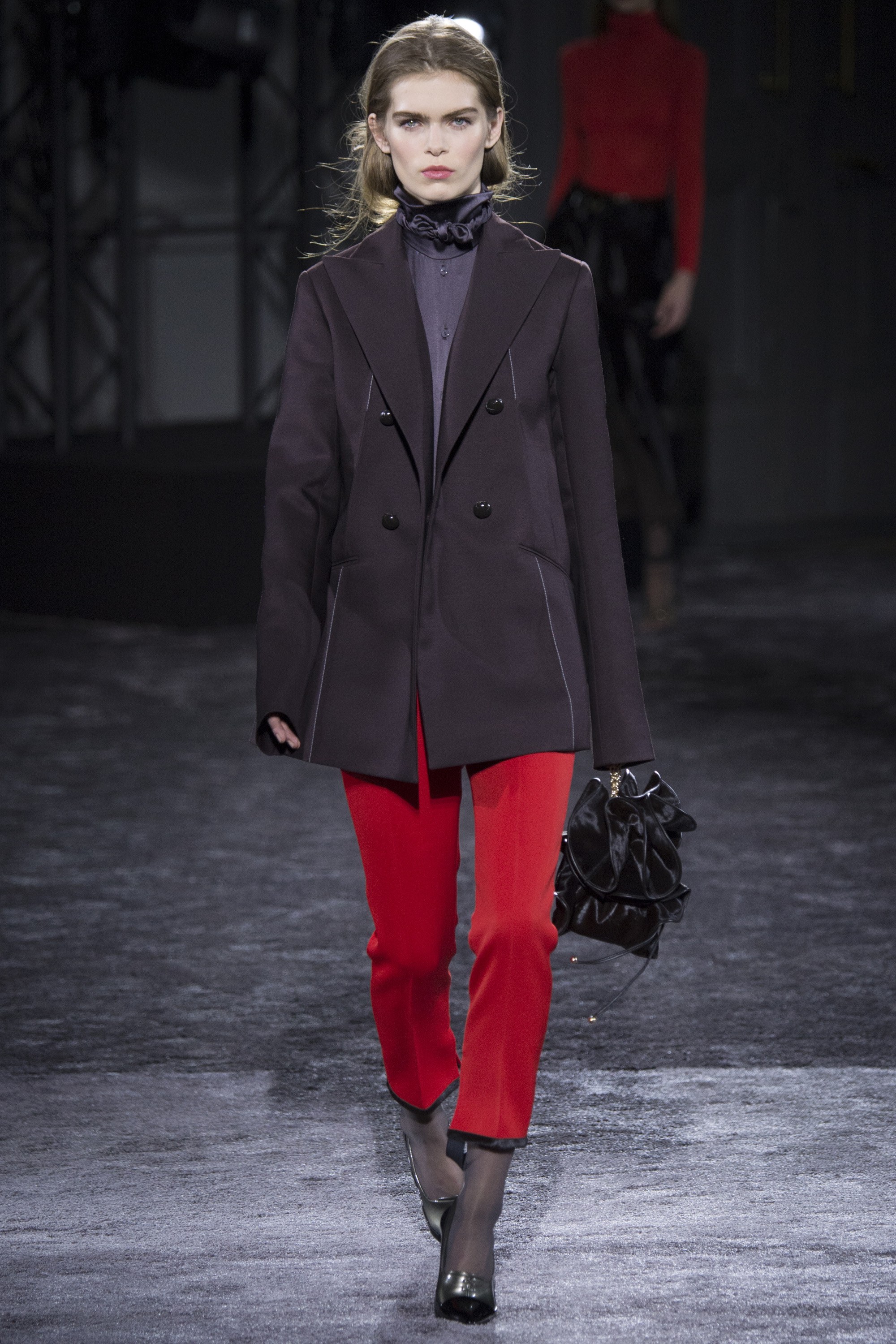 In his third collection for Nina Ricci, Guillaume Henry gave onlookers a 42-piece wardrobe of understated elegance. Offering trench coats with a slight metallic sheen and frothy silk blouses, the collection targeted an edgier woman with a taste for menswear.