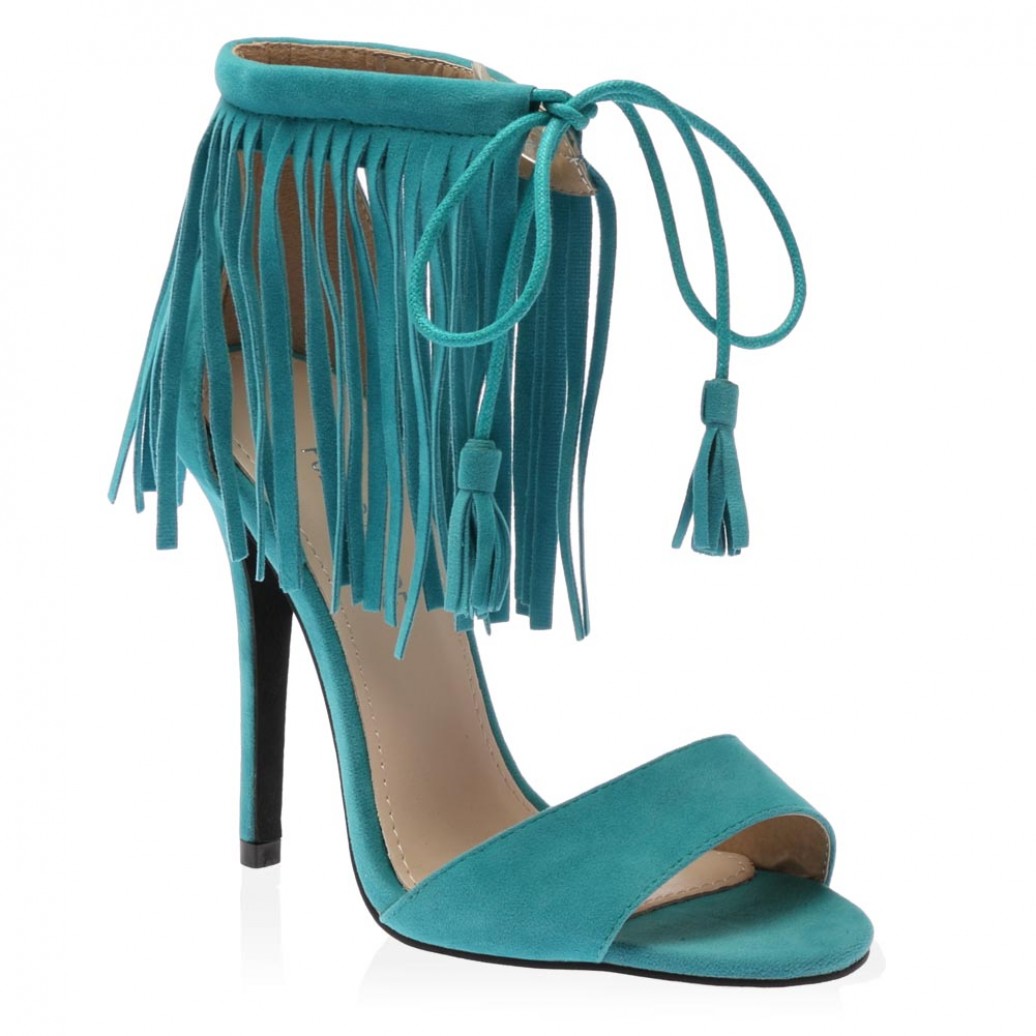 5)Public Desire’s Aqua Blue Jennie Fringe Heel in Faux Suede, $20