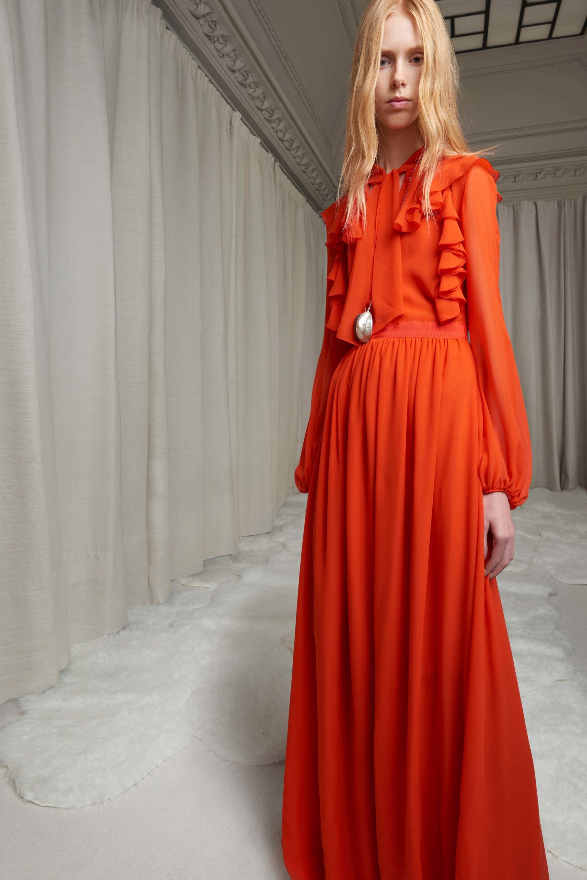 Selena Gomez is going non-stop! She made an appearance at Virgin Radio Station in a Giambattista Valli Pre-Fall 2016 Red Ruffle Gown: