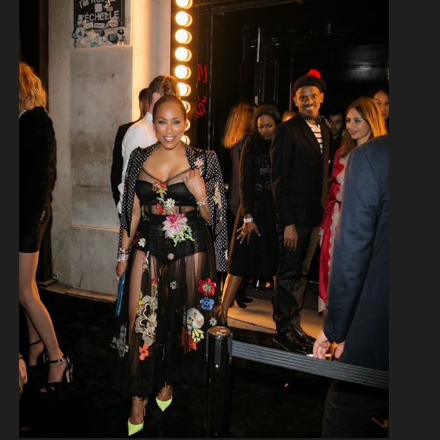 Street style pro Marjorie Harvey also made her rounds during Paris Fashion Week! The style enthusiast consistently served pure slayage with each one of her looks but this Spring 2016 Dolce & Gabbana frock was one of our faves. With a colorful floral detailing and tons of sheer goodness, Mrs. Harvey was an absolute vision. She accessorized with a pair of Christian Louboutin ankle strap pumps and a white polka dot blazer. She looks great, no?