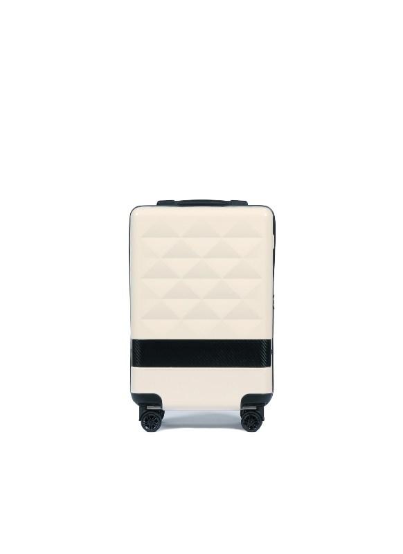 Her carry-on features a removable wardrobe hanging wrinkle-free garment system, reinforced carbon fiber band, diamond pattern design, and 360-degree dual casters for smooth wheeling.
