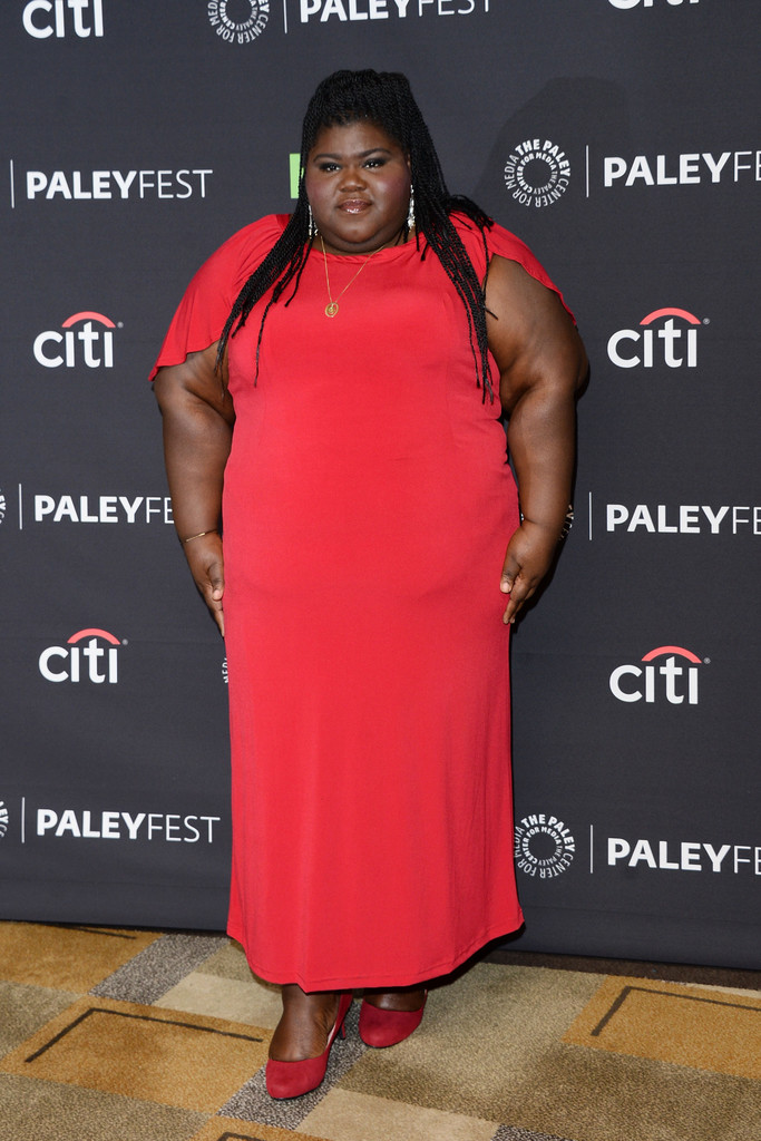 Gabourey Sidibe went for an all red look with an ankle-grazing red dress that featured a cape and red heels.