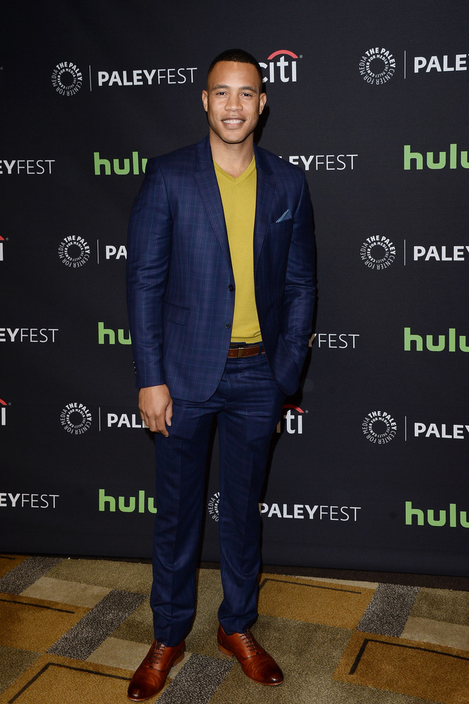 Trai Byers looked dapper in a checkered suit with brown loafers and green shirt underneath. A little touch of color never hurt anyone!
