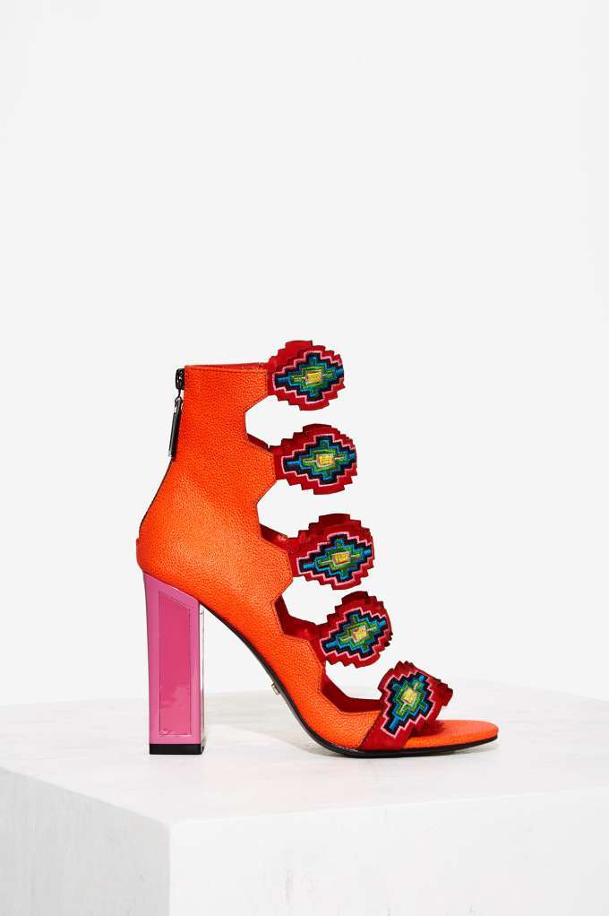 Today’s Bomb Product of the Day is the $290 Thea Aztec Leather Heel by Kat Maconie. Because the brand is known for their vibrant colors, Thea is the perfect statement shoe for the spring and summer seasons.