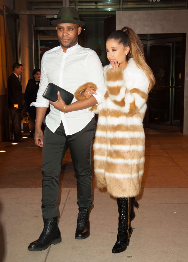 Ariana Grande and stylist Law Roach were arm-in-arm in the Big Apple, with the songstress keeping warm in an oversized fur and patent boots.