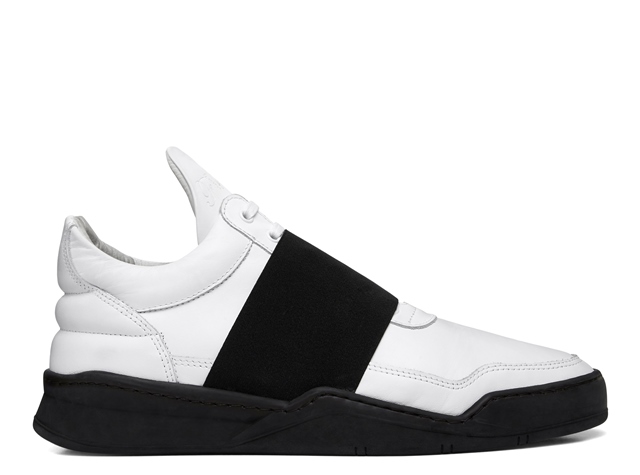 Her black and white kicks feature contrasting elastic bands, padded collars, logo detailing, and rubber soles.