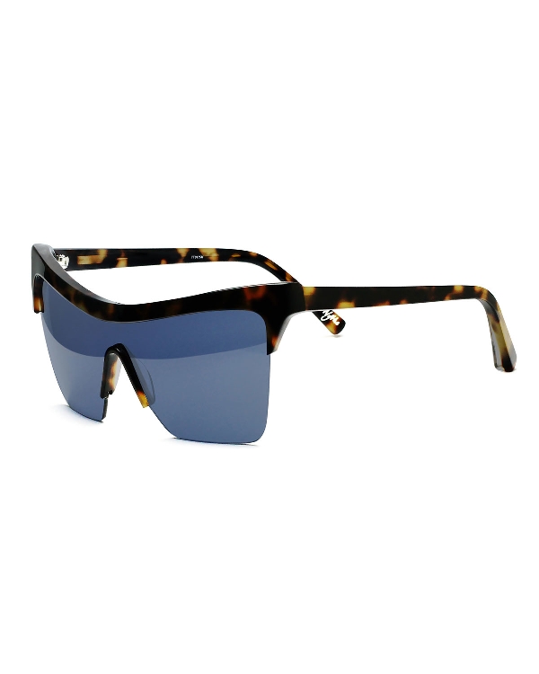 Her rimless sunglasses feature glossy frames and non-polarized lenses.