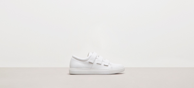 Her low-top sneakers feature triple adjustable velcro straps and a round toe silhouette.