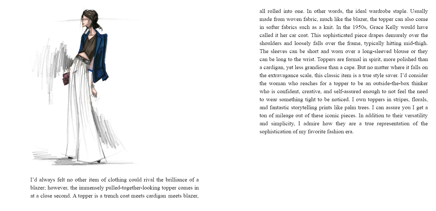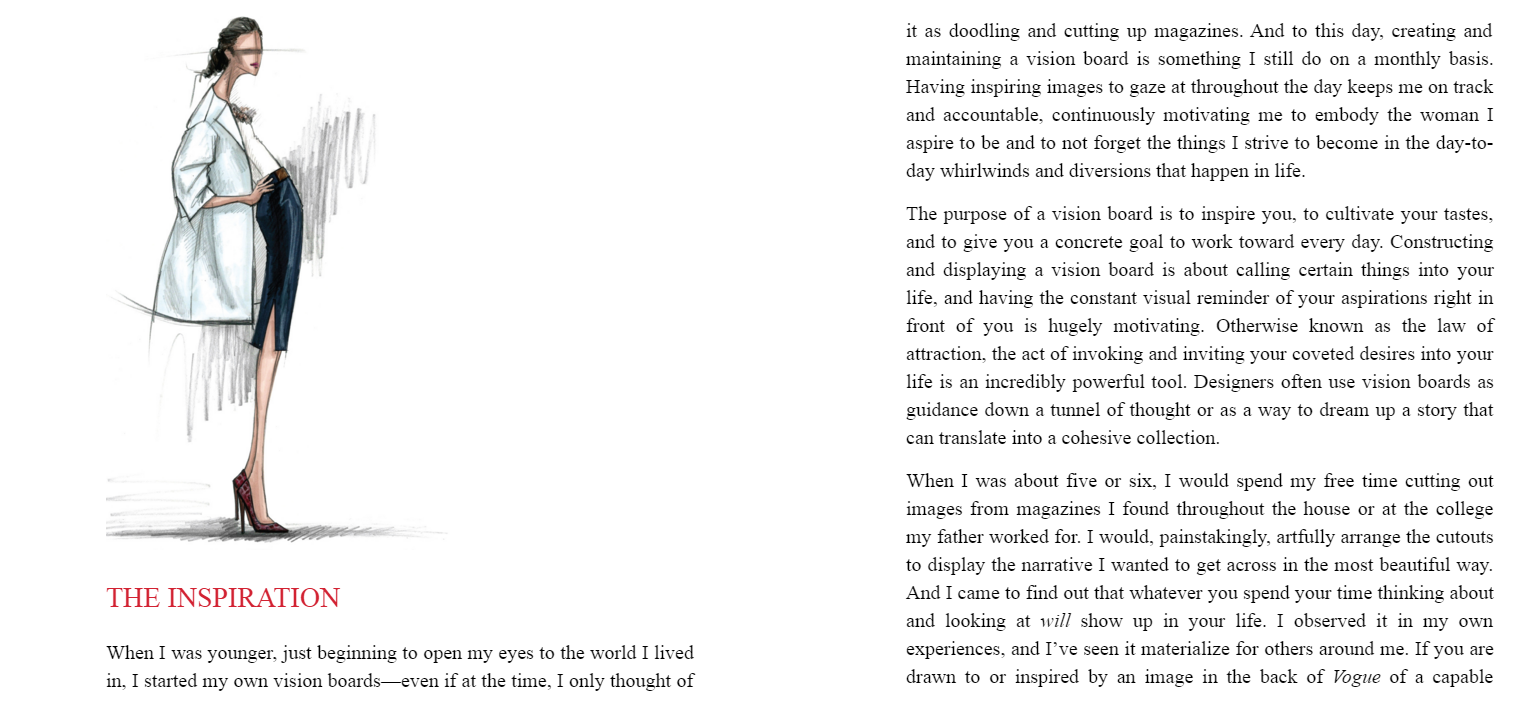 It features sketches, quotes from icons like Maya Angelou, and informative and inspiring advice with chapters like “Letting Your Dreams Lead In Fashion and In Life”.