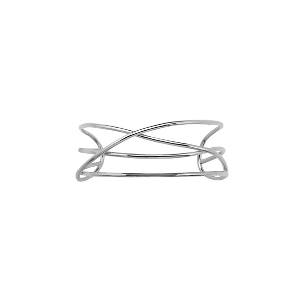 Her plated silver and rhodium choker features abstract lines for an artful piece of jewelry.