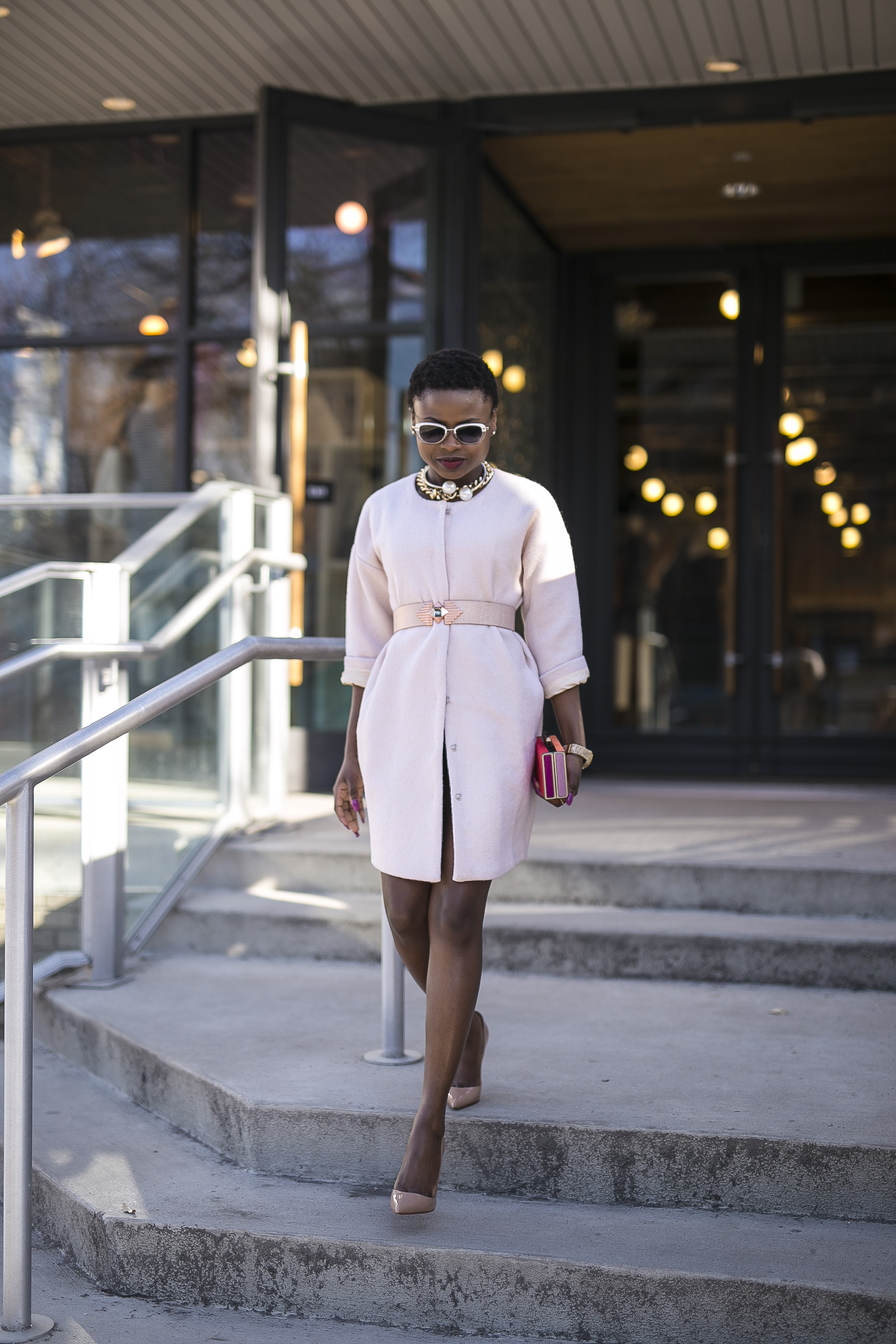 Marche wrote, “My name is Marche Robinson and I write the blog www.therobinsonstyle.com. I would like to submit the attached picture wearing a blush pink trench dress for the How Do You Wear It feature.” I see you Marche!