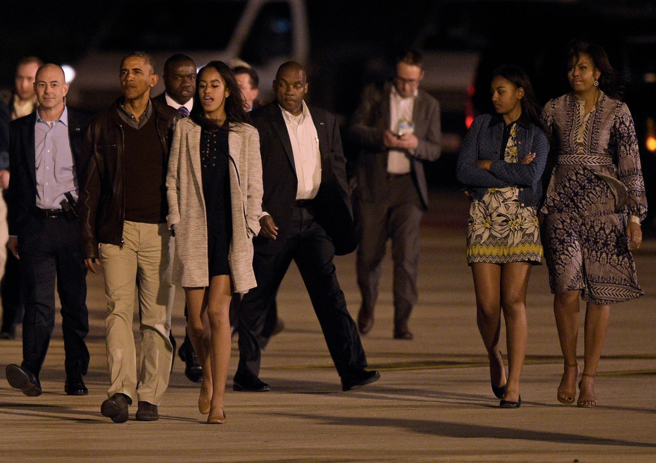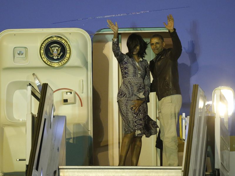 While First Lady Michelle Obama sometimes wears looks that are accessible to the entire world (we’ve all heard of J. Crew and the Tory Burch she wore in Cuba is available for purchase now) every once in a while she uses her privilege as a VIP and its access to pieces before anyone else. Prime example: For the First Family’s Argentina send-off, Mrs. Obama pulled out a blue and silver printed Tovero dress from Tory Burch’s Fall 2016 line, shown this past February at fashion week.
