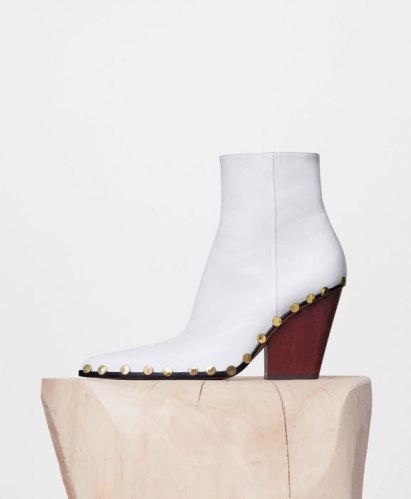 Her Celine heels feature studs in optic white lambskin, and are available upon request through customer service