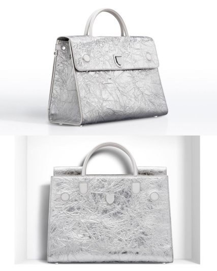 Her purse features lambskin covering, reversible flap that changes the appearance of the front of the bag, top handles and a detachable shoulder strap.
