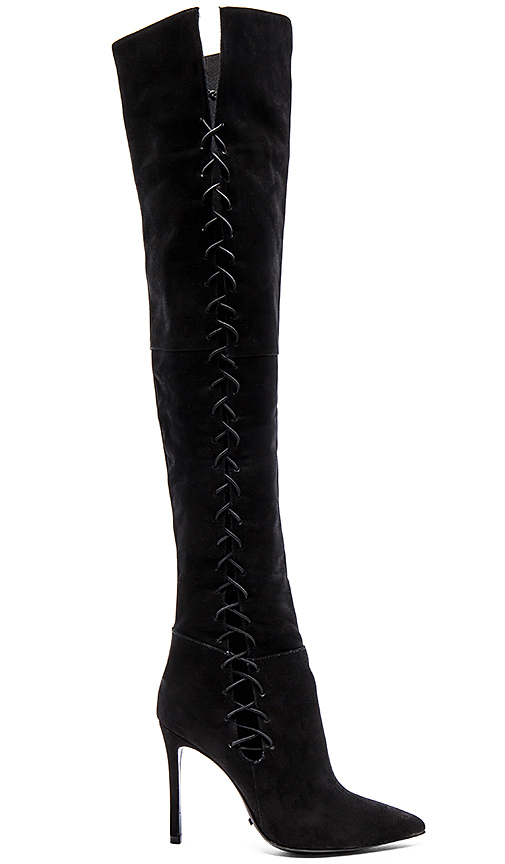 She accessorized with $395 Schutz Dudalina Lace Up Thigh High Black Boots.