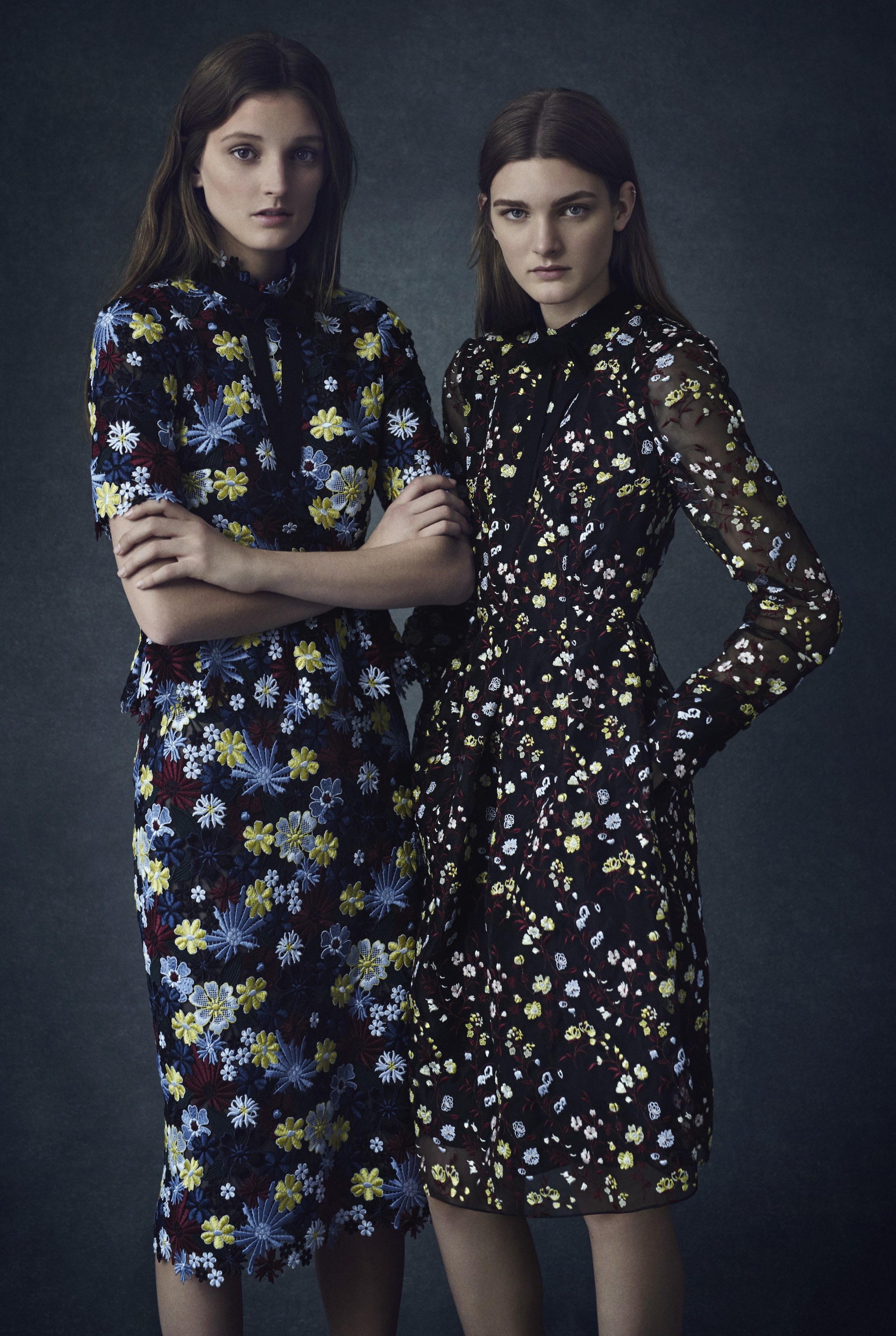 Her dress, which is still not available yet (UGH) features a high-collar and multi-colored floral embroidery throughout.