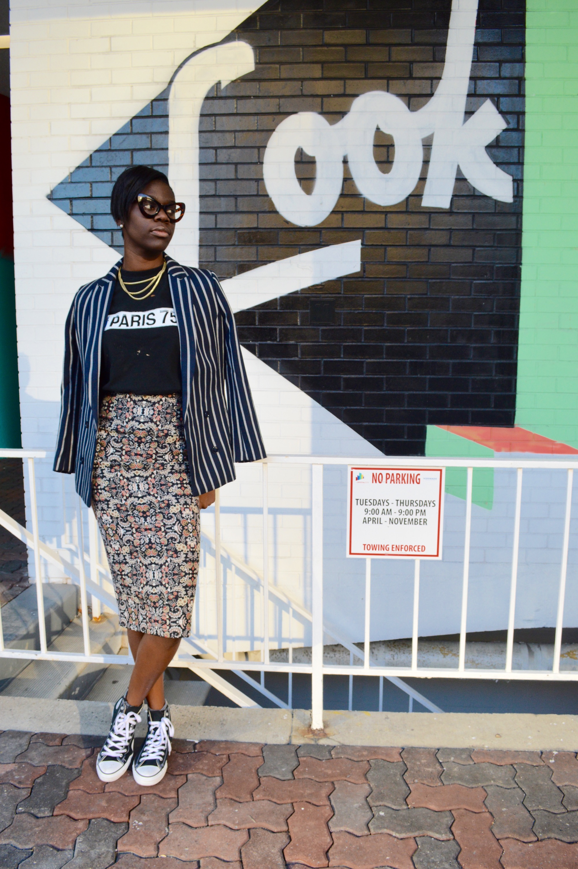 Cute! You have legs for daaaaaays, Valerie. I’m loving that red leather-looking skirt and that blue cardigan with the white dress. Yum. Hang out with Valerie on IG: @jc_thestylist. So, what do you think of her style?
