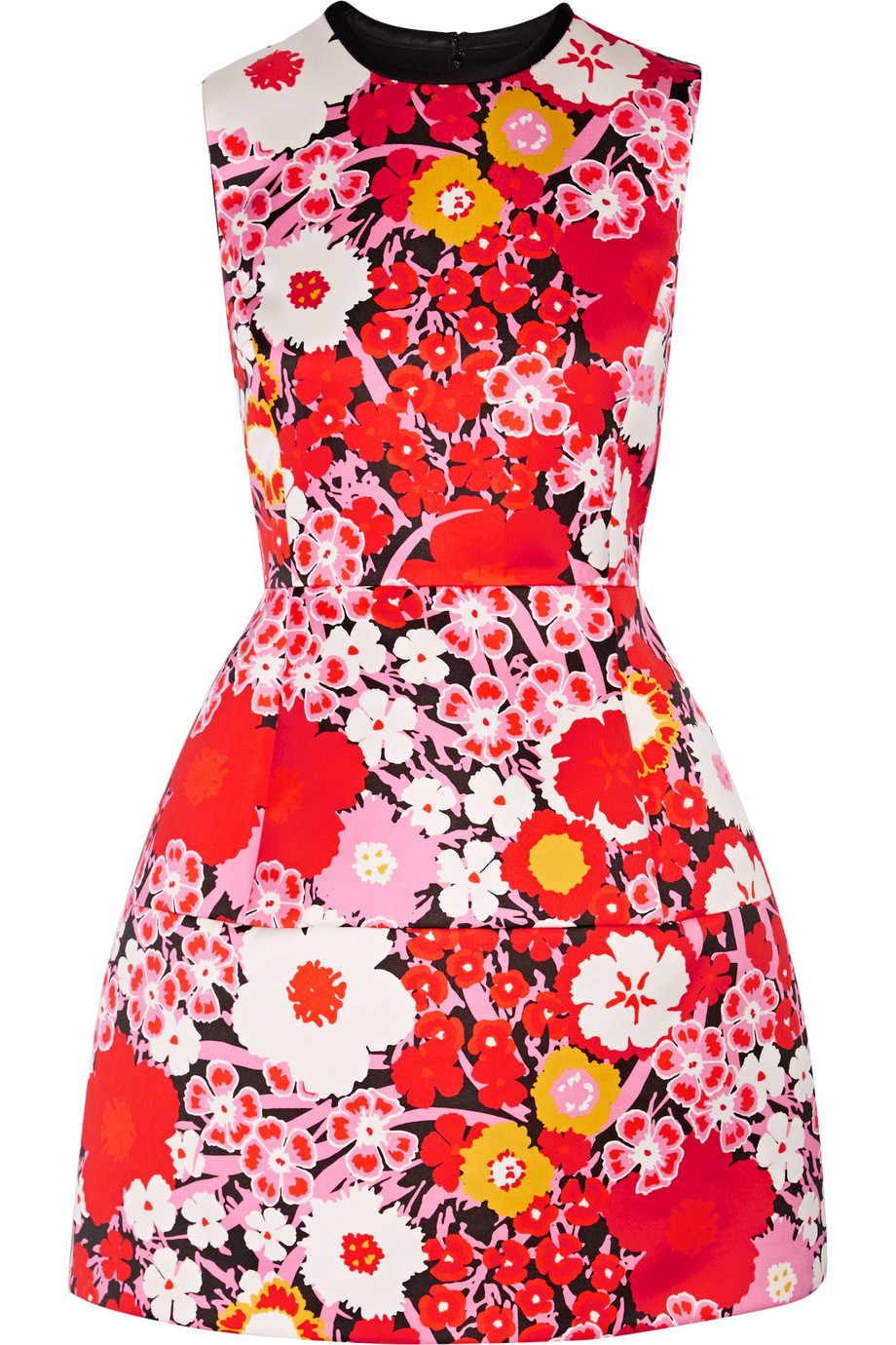 The dress is crafted from satin, silk-lined and has a collected waist with slight flare with floral designs throughout.