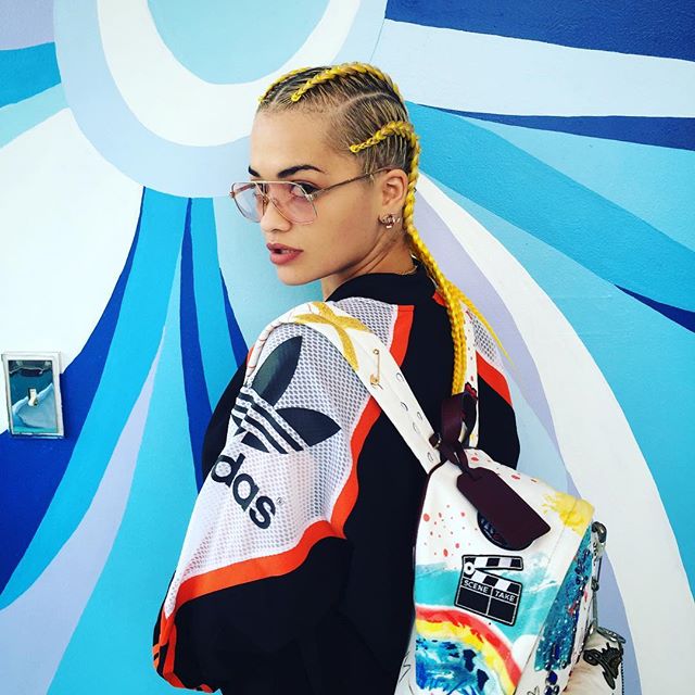 Songstress Rita Ora recently took to Instagram while rocking yellow cornrows, vintage-inspired frames and a $950 Marc Jacobs Ecru Multi Collage Printed Canvas Backpack.
