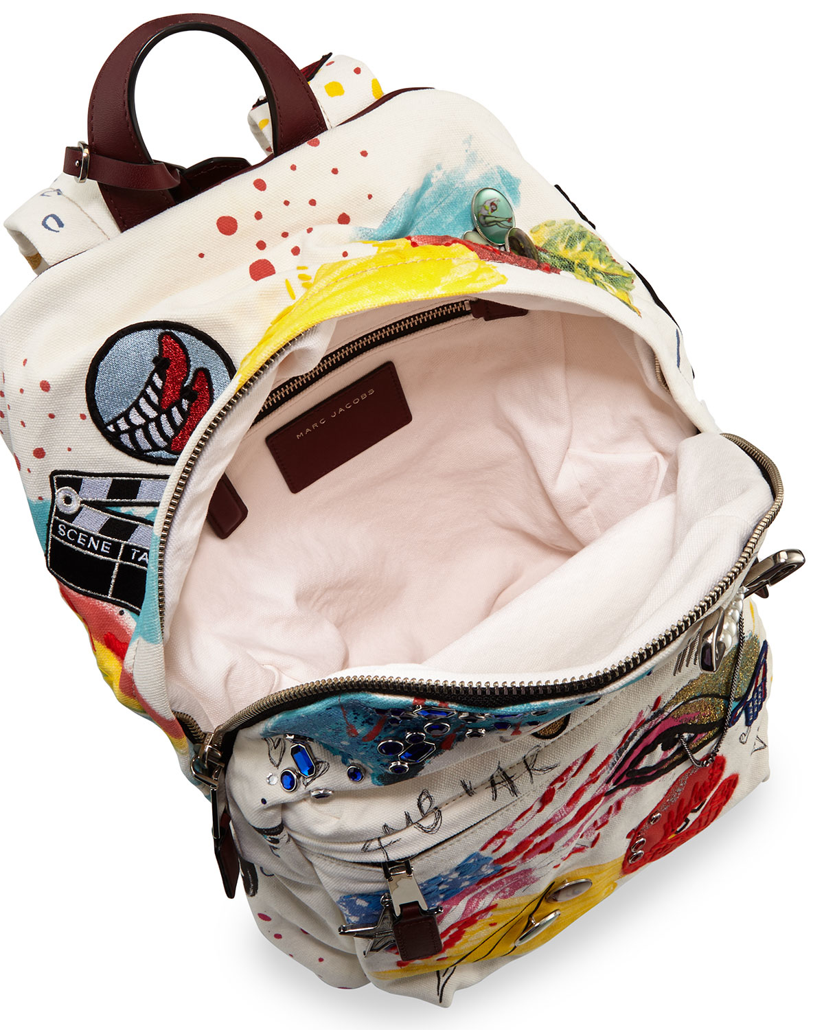 The unique accessory boasts a plethora of scattered graphics, pins and fun patches.