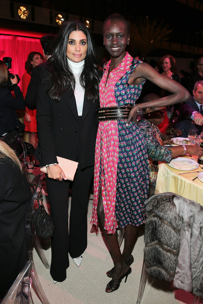 Alek Wek was spotted at the 7th Annual Women in the World Summit VIP Dinner alongside designer Rachel Roy while uplifting a $498 Spring 2016 Diane von Furstenberg Pink and Midnight Nieves Zen Floral A-Line Dress.