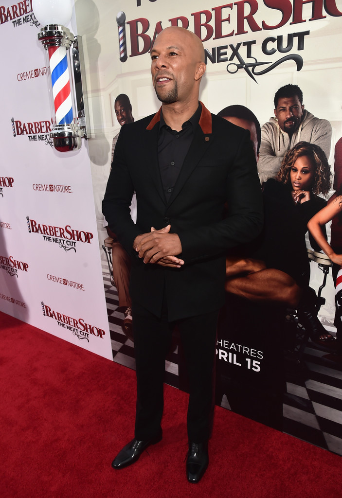 Common kept it simple in all-black with a contrast rust accent on his jacket collar. He’s always dapper.