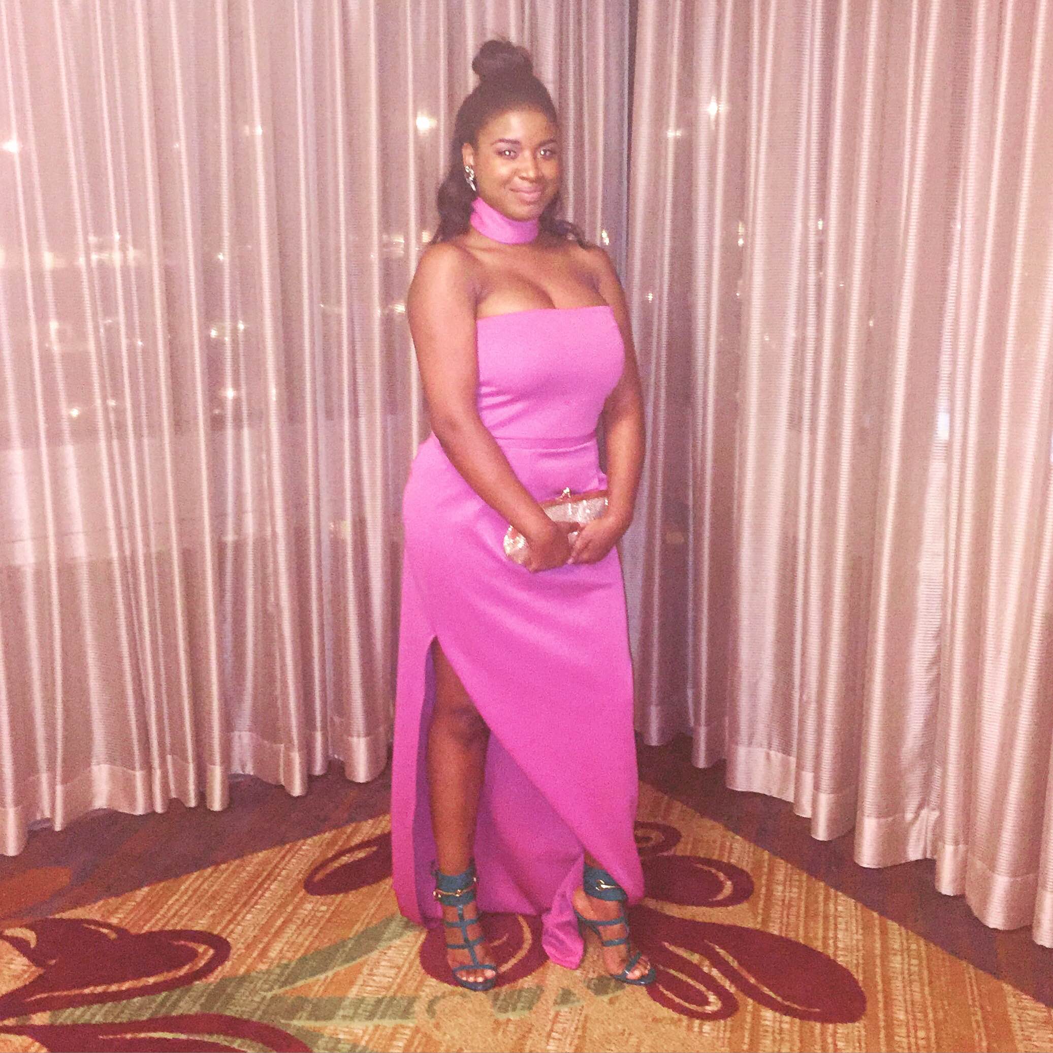 Tatiana, @TDMBRAND, looked pretty in pink with a strapless pink dress and matching pink choker. She told us, “This how I wore my “choker trend”. I recently attended a Coronation Ball and I designed and made this dress. I wanted to accessorize with with less jewelry and add more edgy to the look so I made a fabricated choker. “
