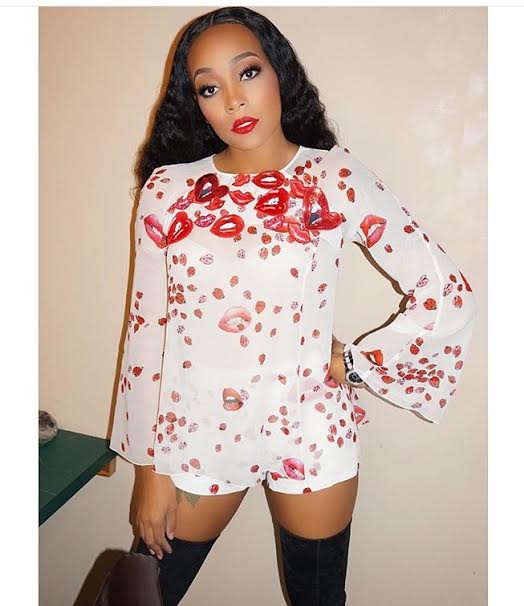 Monica Brown hit the stage in St Louis for a concert at The Ambassador wearing a $1,230 Giamba Resort 2016 Lady Bug and Lip Print Blouse with matching $670 Crepe Lip Print Shorts: