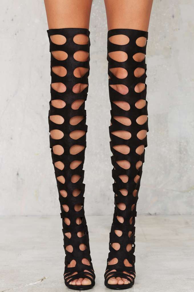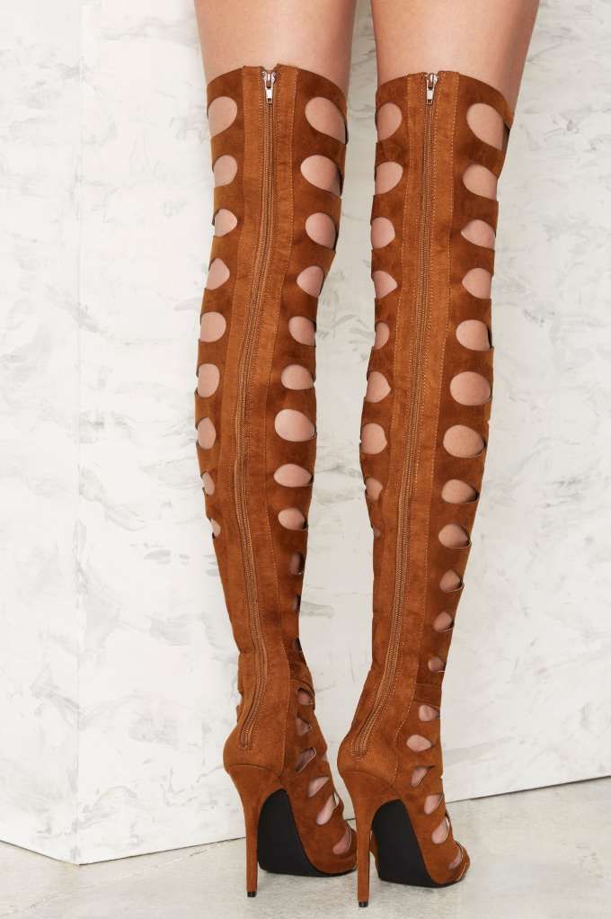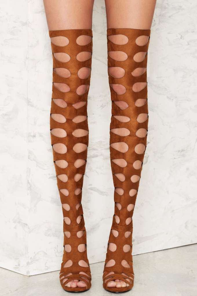 I don’t know about you, but Kendall Jenner’s fancy footwork from the MTV Movie Awards has me craving over-the-knee heels. Such a sexy trend for the spring/summer season. If you need help finding the perfect pair, check out today’s Bomb Product of the Day, $150 Privileged Brown One Hit Over-the-Knee-Stiletto Heel: