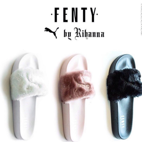 Rihanna has released two pairs of footwear through her Puma link-up: a covetable Creeper as well as a trainer in black, red and white. Now the singer is back with her third drop in the form of a flip flop according to the Rihanna Navy. Introducing the Fenty Fur Slide.