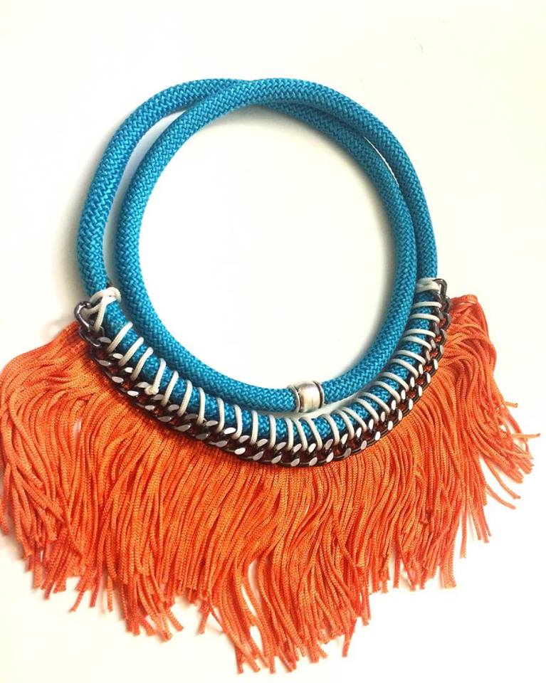 The necklace retails for $60 and comes in blue, aqua and teal.
