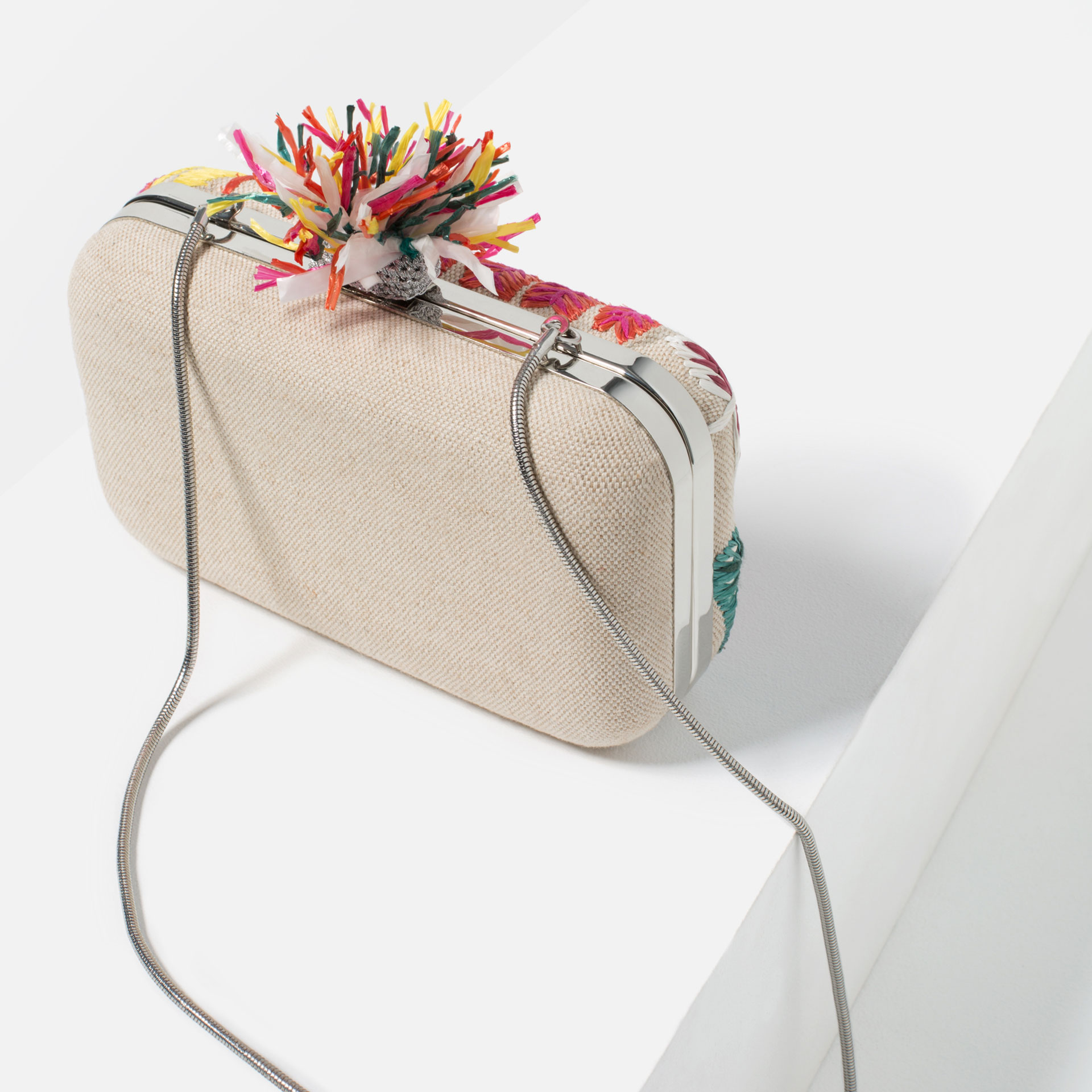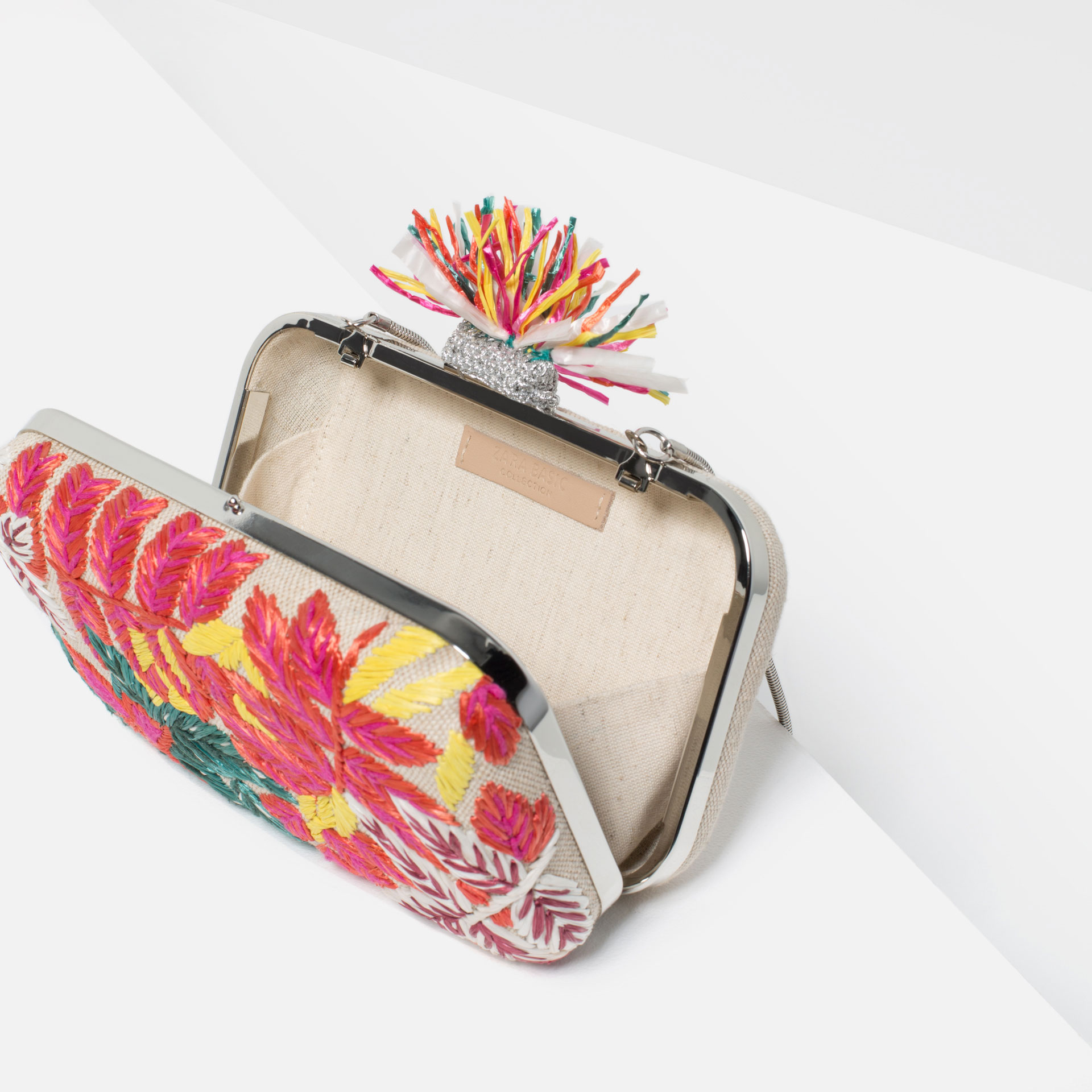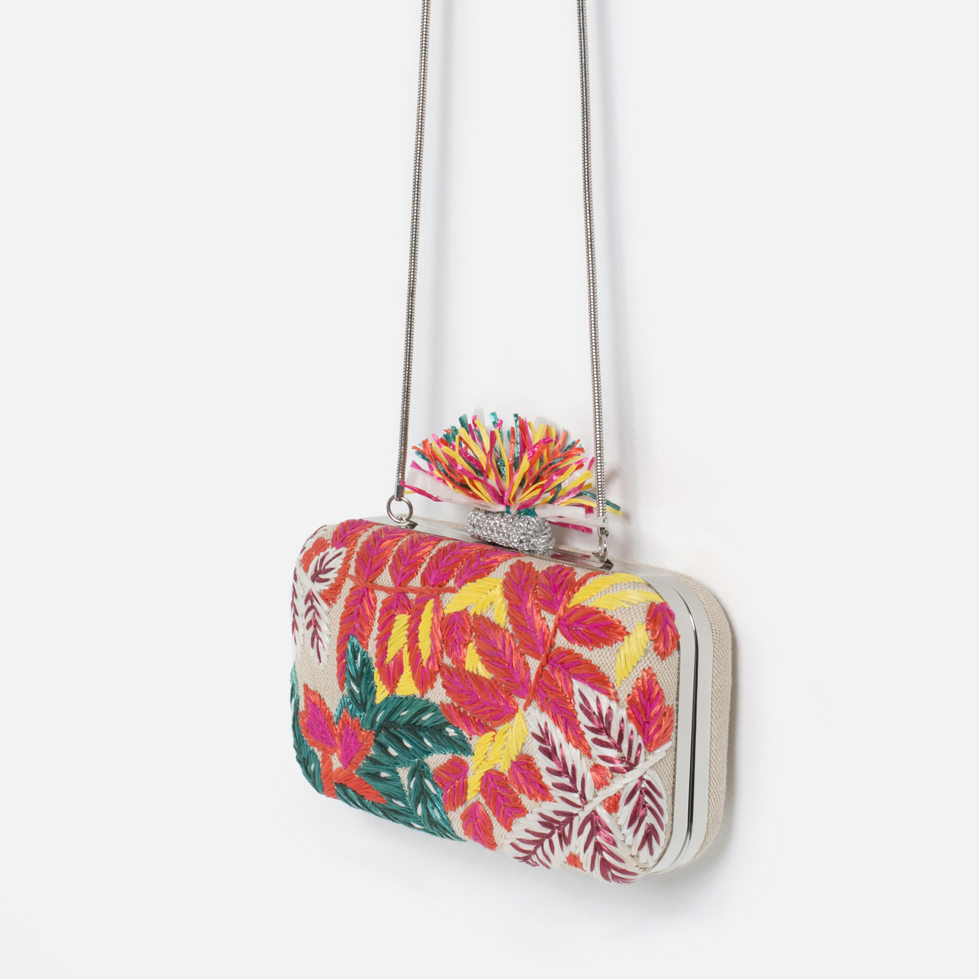In the spring, handbags transition from being big and bulky to small and flirty. If you’re looking for a chic, attention-grabbing clutch to shove your essentials into, then don’t worry- we’ve got you covered. Check out today’s Bomb Product of the Day, Zara’s $50 Embroidered Minaudiere Clutch: