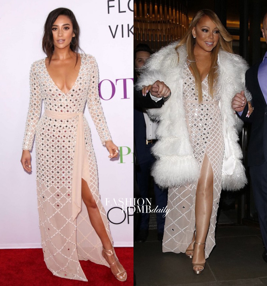 Both women accessorized with metallic heels, though Mariah threw a white fur on for an extra dose of glamour.